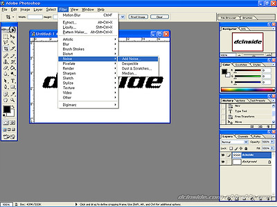 5. 선택영역이 잡힌상태에서 Filter > Noise > Add Noise를 선택합니다.