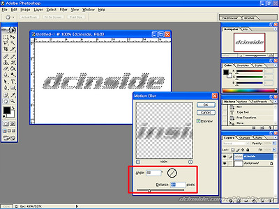 8. 설정값을 Angle 48, Distance 48로 설정합니다.  Motion  Blur필터가 적용되면 어느정도 스케치한 효과가 나타납니다.