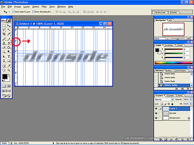 10. 글씨 패턴에 알맞게 가이드 라인을 넣어줍니다. 가이드 라인은 상단과 좌측부분에 있는 Rulers에서 드래그하면 나타납니다. Ruler가 보이지 않으면 View > Rulers ( 단축키 Ctrl + R )를 선택해 나타나게 합니다.