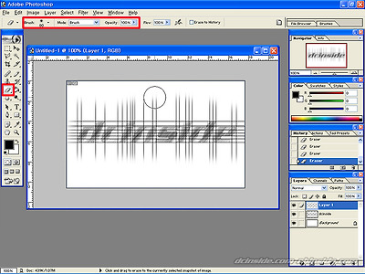 13. 어느정도 지우개 툴로 정리가 되었으면 선그어진 Layer 1의 Opacity를 내려줍니다. 예제에선 Opacity값을 48로 내렸습니다.