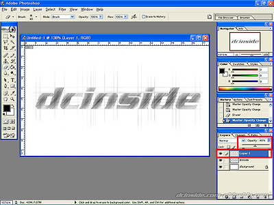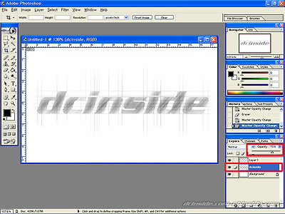 14. 이번엔 글씨가 쓰여진 레이어의 Opacity를 약간 내려줍니다. 예제에선 Opacity값를 73으로 내렸습니다. 이미지를 Layer > Flatten Image로 합쳐주면 완성됩니다.