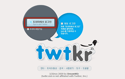 twtkr.com의 기본 화면 구성을 알아보겠습니다.
