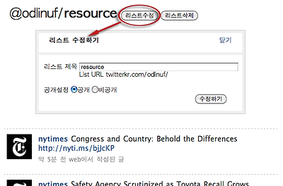 자신이 follow 하는 트위터 사용자를 리스트로 분류해 그룹 관리할 수 있는 기능입니다.