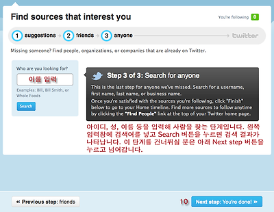 - 사람찾기: 트위터 내에 있는 트위터 사용자를 검색합니다.