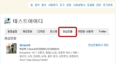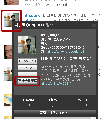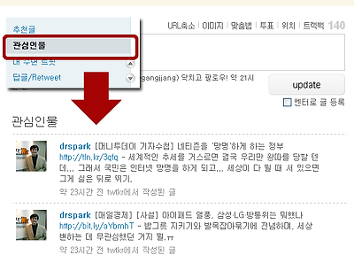 - 관심인물은 트위터 리스트 기능을 이용한 기능입니다.