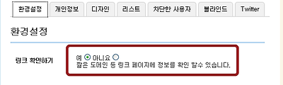 - 새창열기: 프로필, 멘션, 글보기 등을 새창으로 열어서 볼 수 있습니다. 예를 들어, “예”를 선택하고 프로필을 클릭하면 새 창이 열리지만, “아니오”를 클릭하고 클릭하면 현재 창에서 열립니다.