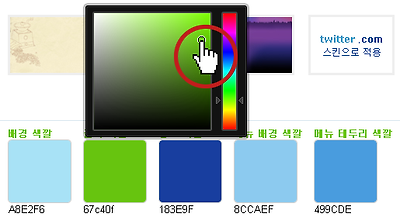 - twtkr 사용자 컬러값 적용: 기본으로 설정되는 색깔 이외 에 사용자가 임의로 색깔을 지정 할 수 있습니다.