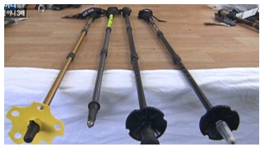 <앵커>등산 열풍 때문에 요즘 등산용 스틱 쓰시는 분들 많습니다. 그런데 유명 업체들의