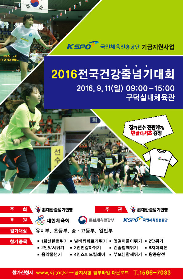 2016 전국 건강 줄넘기대회 및 시범경연(9월11일) 작성자대한줄넘기연맹|작성시간16.07.14|조회수122 목록 댓글 0 글자크기 작게가 글자크기 크게가 다음검색 현재 게시글 추가 기능 열기 북마크 공유하기 신고 센터로 신고 댓글 댓글 0 댓글쓰기 댓글 리스트