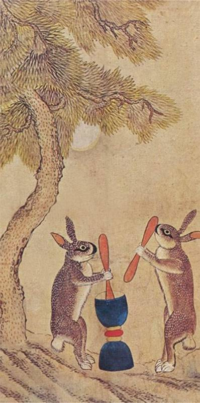 바친다. 덕분에 토끼는 달을 지키면서 신령한 계수나무를 빻아서 늙지 않는 약을 만들게 됐다는 것이다.