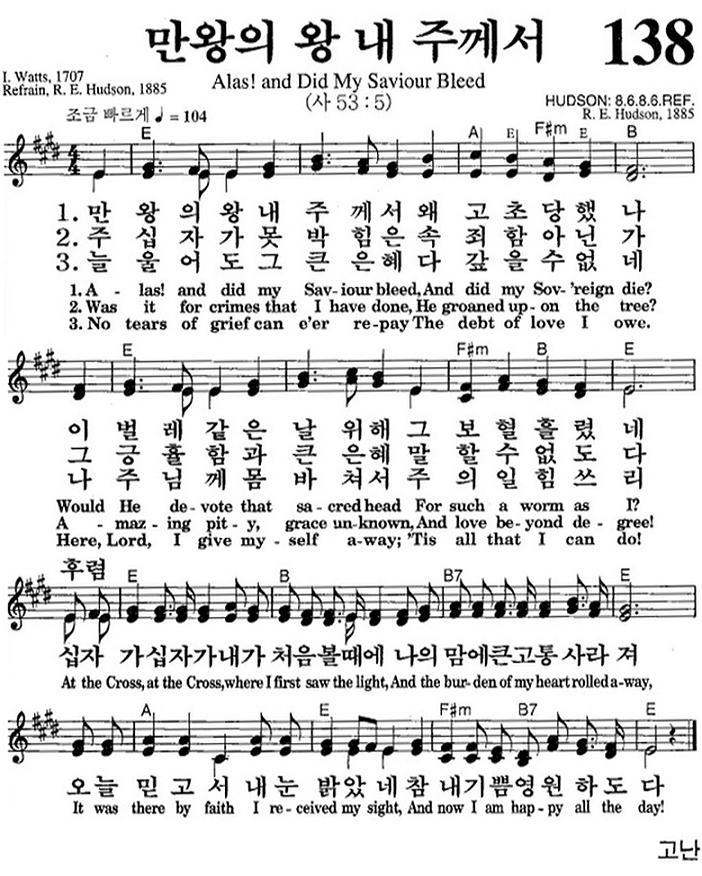 [스크랩] (♬在) (영어 찬송) 138장, 만왕의 왕 주께서, Alas! and Did My Saviour Bleed (♬在)