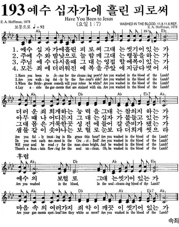 [스크랩] (♬在) (영어 찬송) 193장, 예수 십자가에 흘린 피로써, Have You Been to Jesus (♬在)