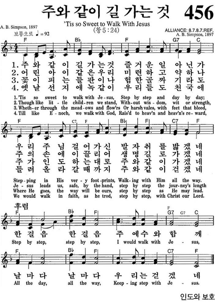 [스크랩] (♬在)(영어 찬송) 456장, 주와 같이 길 가는 것, `Tis so Sweet to Walk With Jesus(♬在)