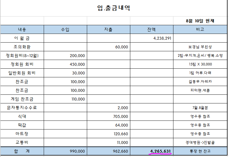 *****2015년 8월 하계 단합대회 결산보고*****