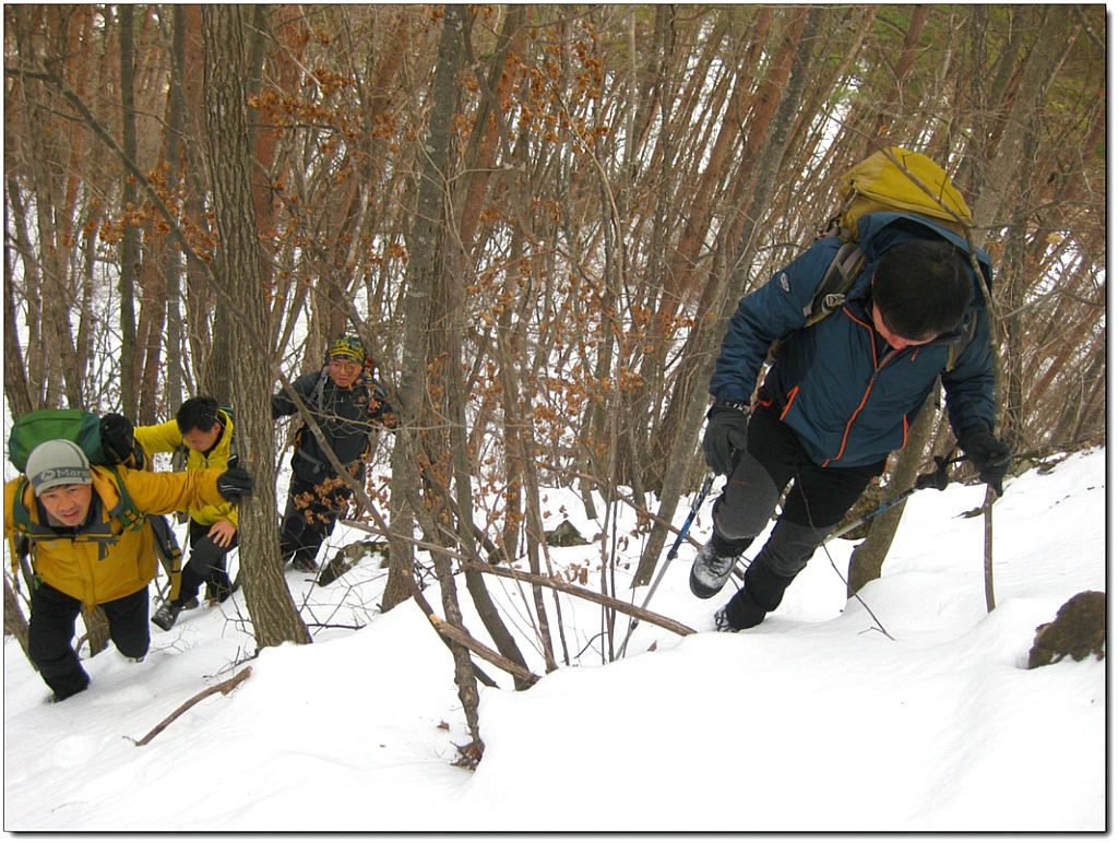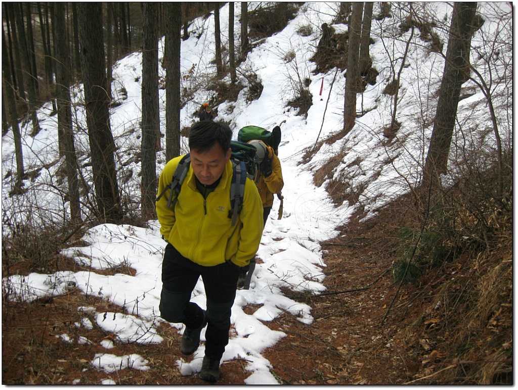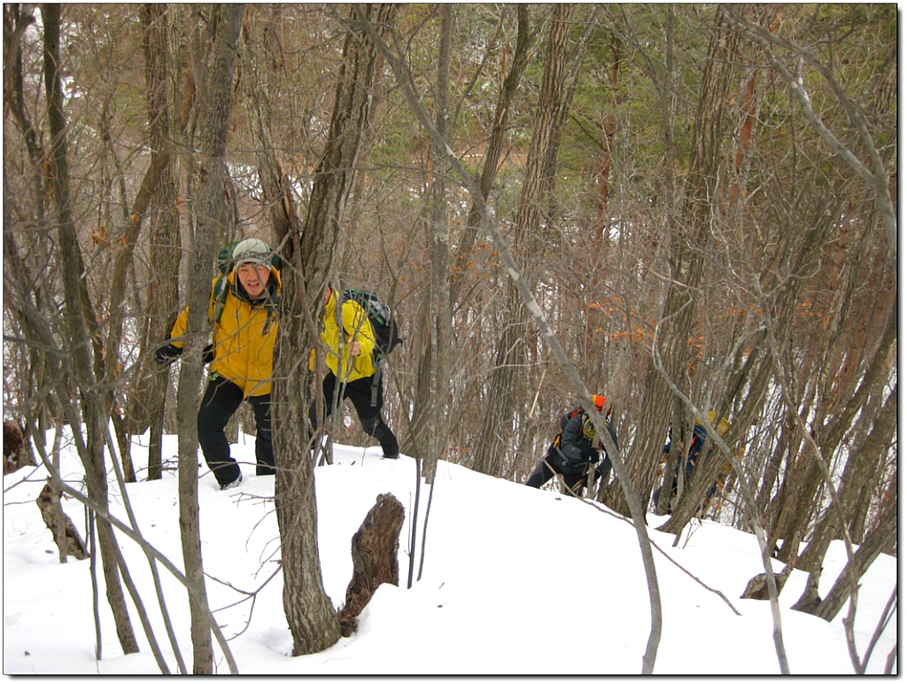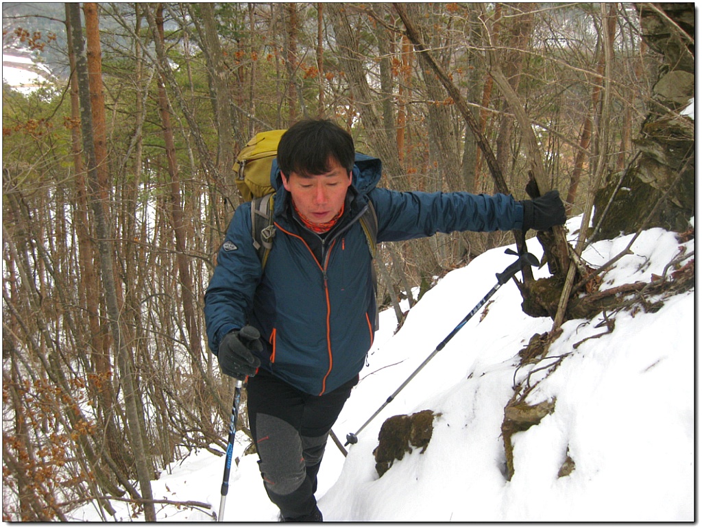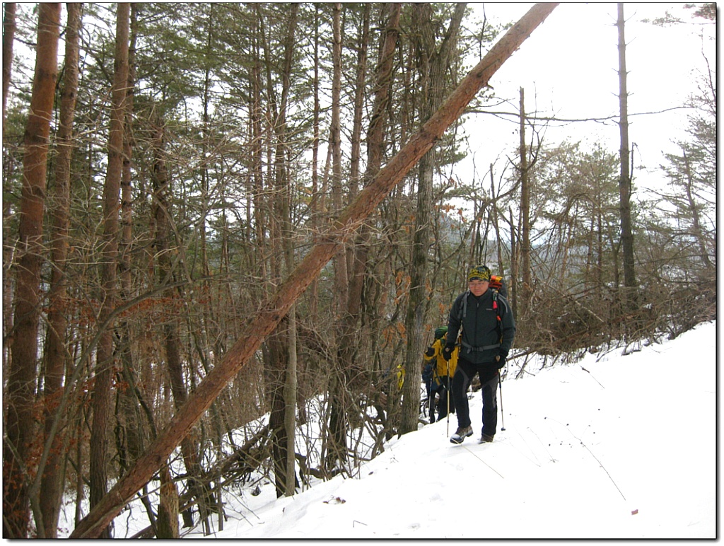 눈이 덮여 길이 잘 안보인다. 이럴때 신들메는 가는 방향 봉우리를 치고 오른다.