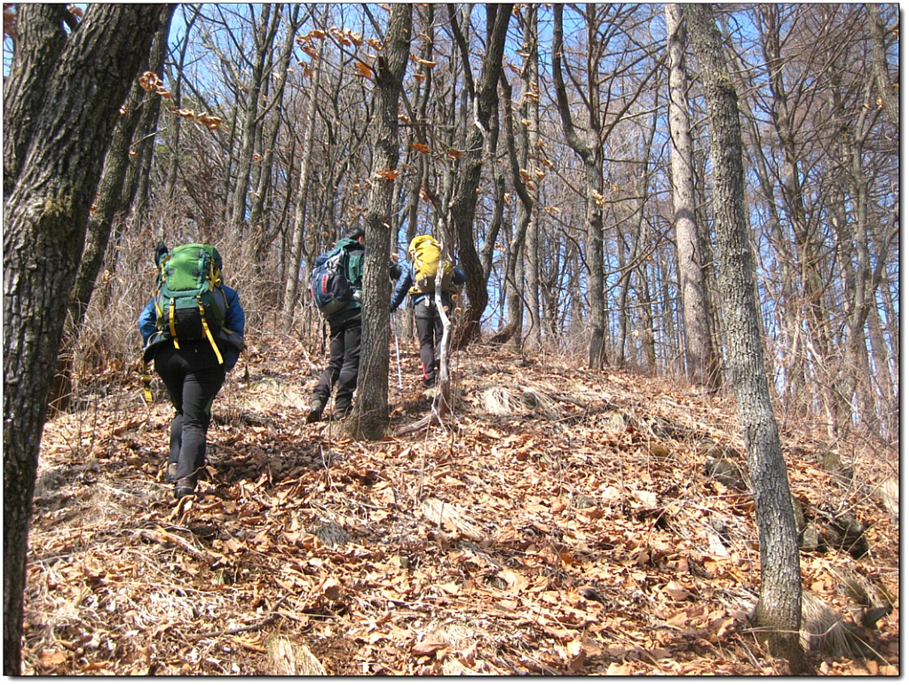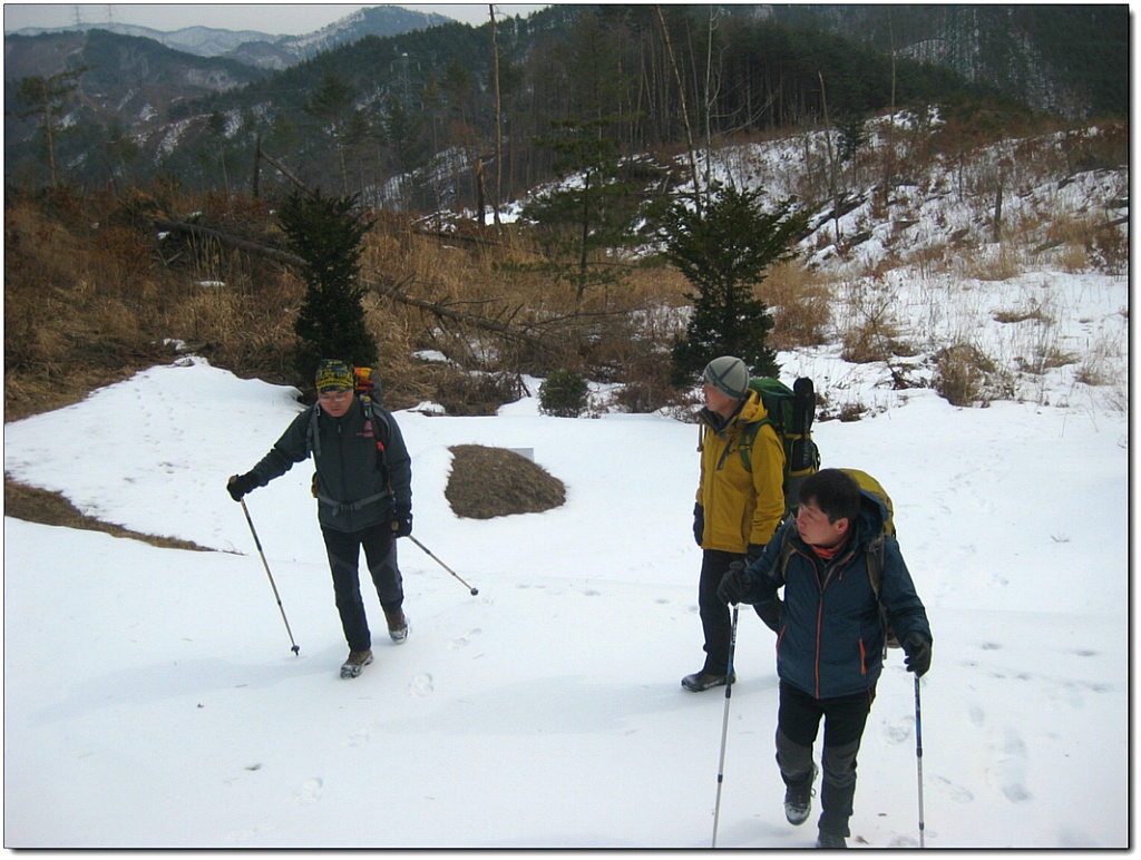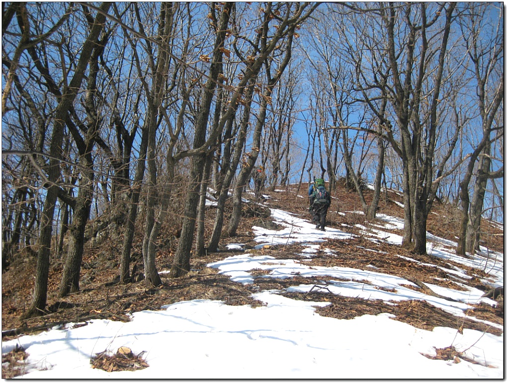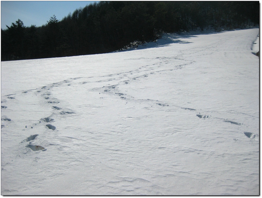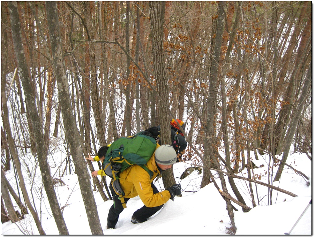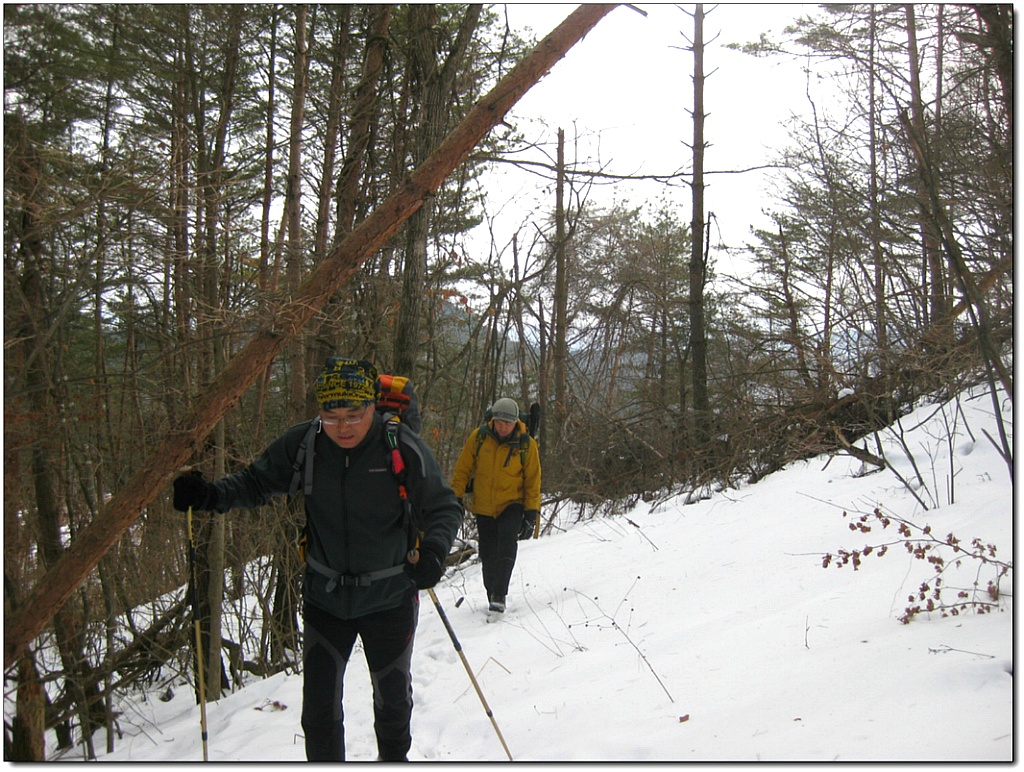 눈이 덮여 길이 잘 안보인다. 이럴때 신들메는 가는 방향 봉우리를 치고 오른다.