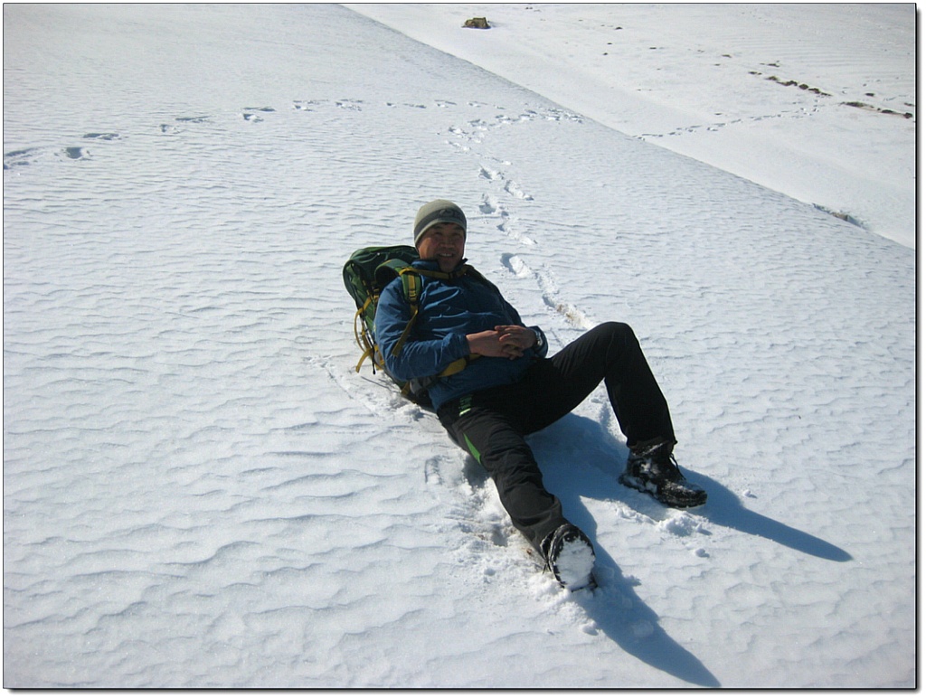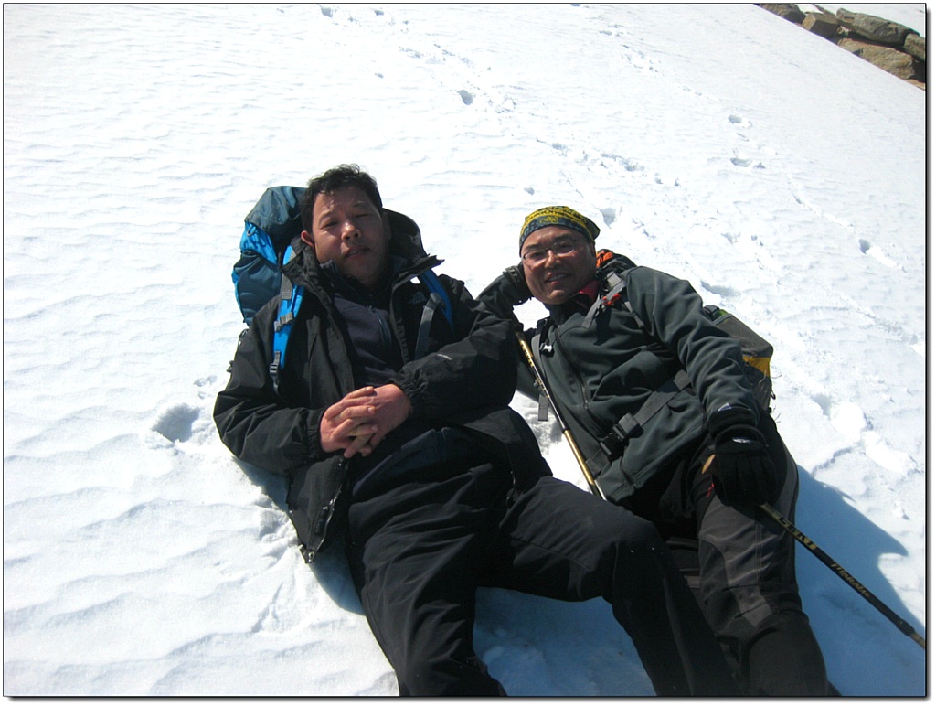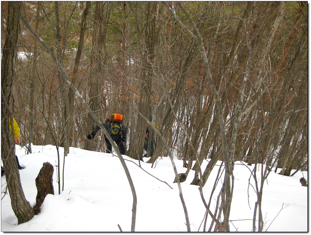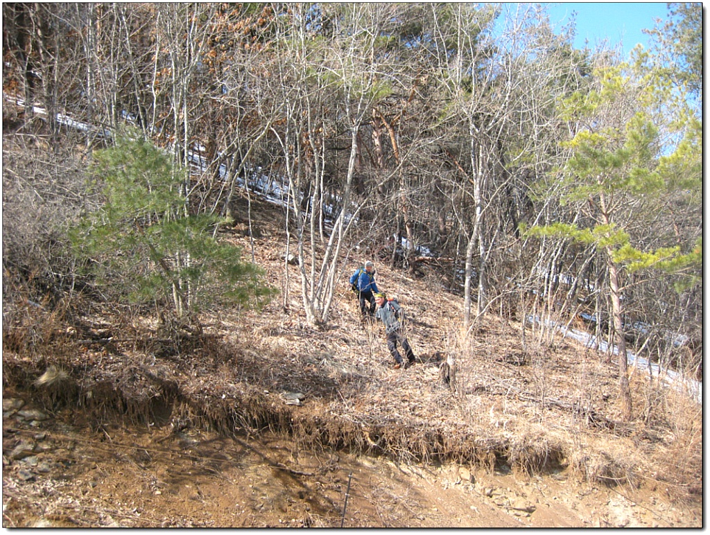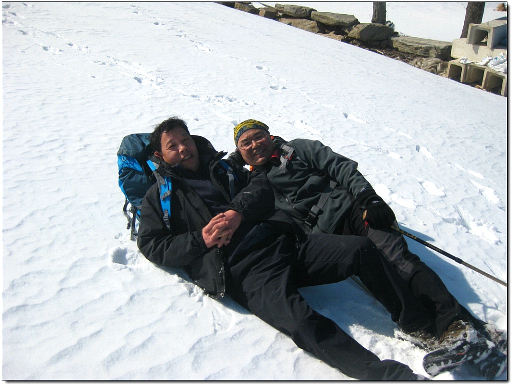 눈이 덮여 길이 잘 안보인다. 이럴때 신들메는 가는 방향 봉우리를 치고 오른다.
