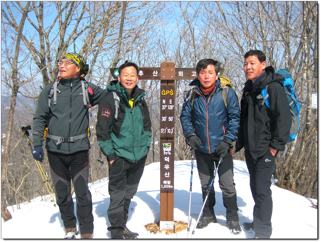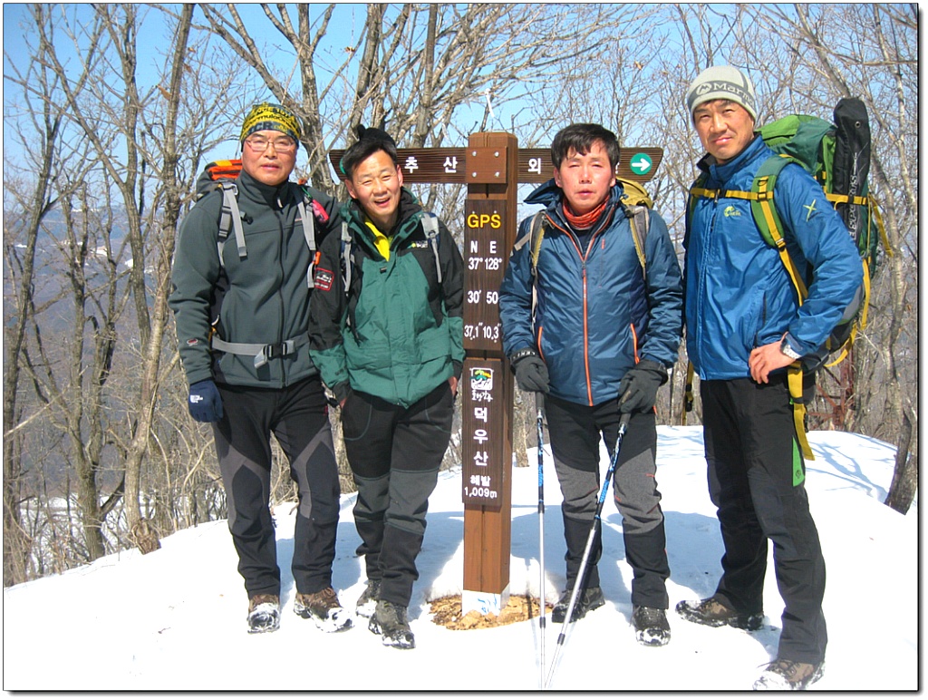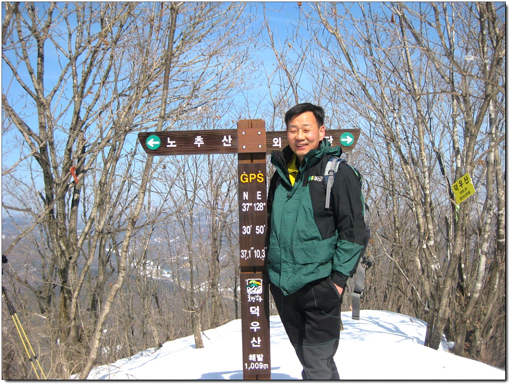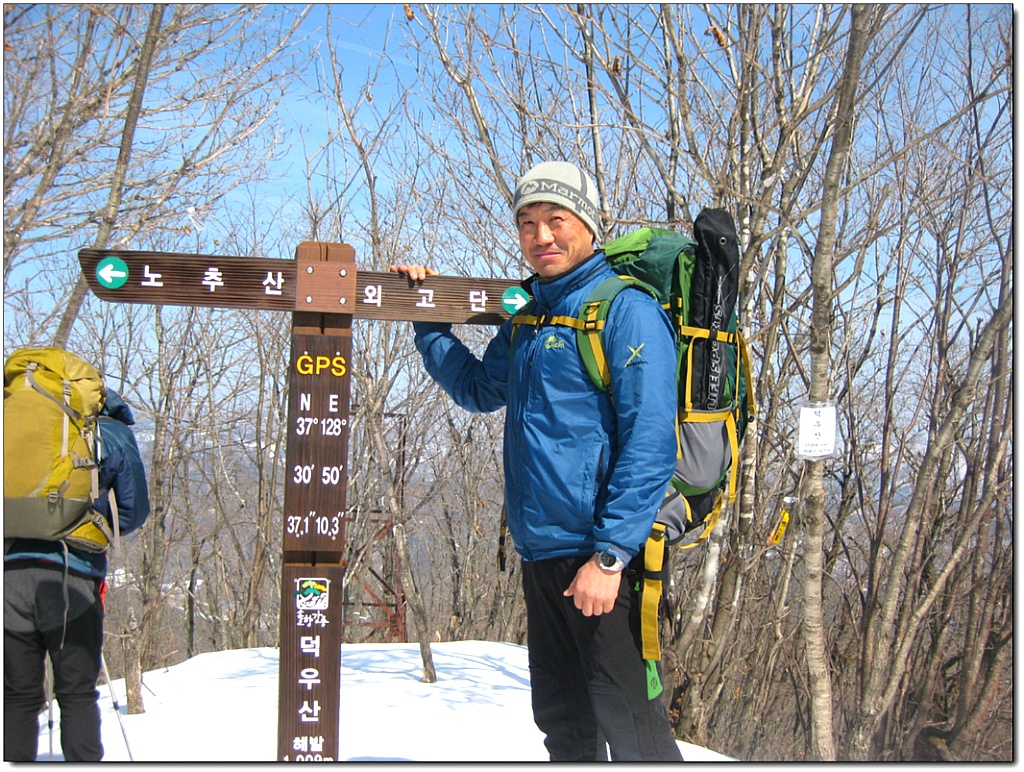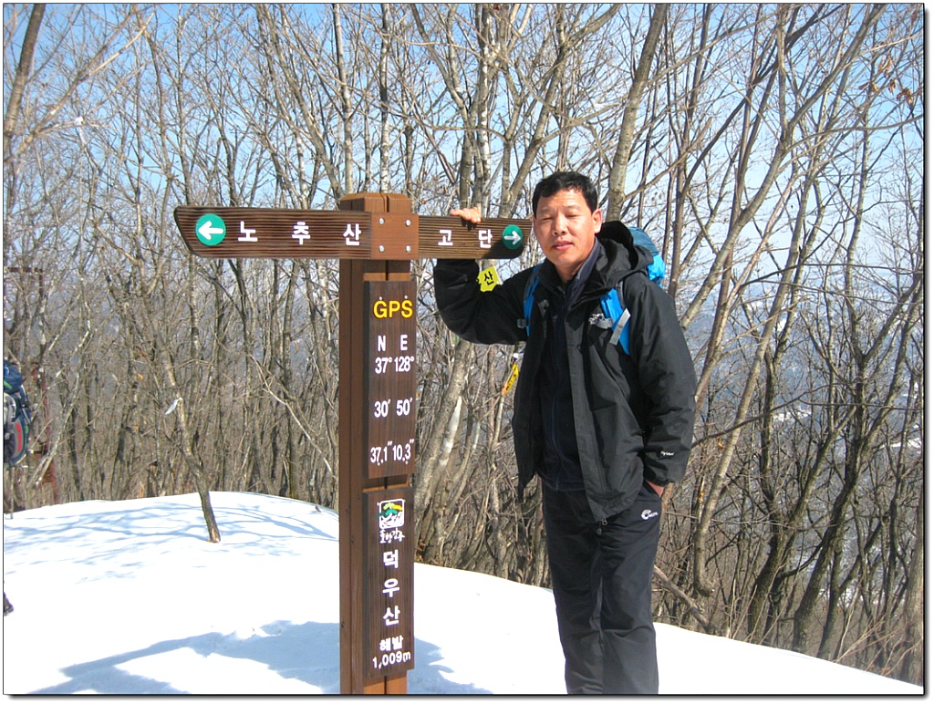 강릉과 정선 임계면 경계에 있는 덕우산, 서쪽으로 노추산이 북쪽으로 선자령과 황정산, 동쪽으로 석병산이 뻗어 있는 곳이다. 계획대로라면 산넘어 왕산면 대기4리 암반덕이로 올라와야했는데 그쪽 접근로는 결빙으로 접근할 수가 없어 반대편 버들고개(삽당령지나)에서 오른다.
