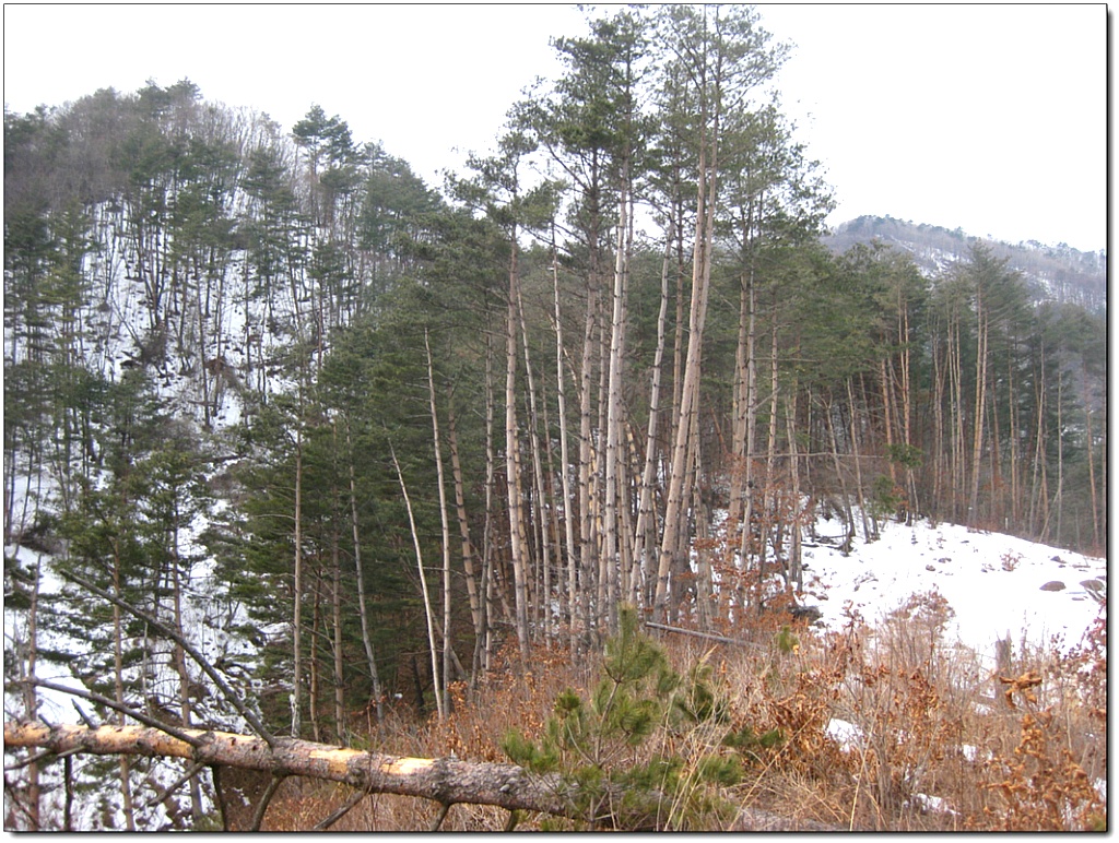 올 겨울 마지막 눈구덩이를 찾아 눈이 많이 왔다는 강릉 덕우산엘 올랐습니다.