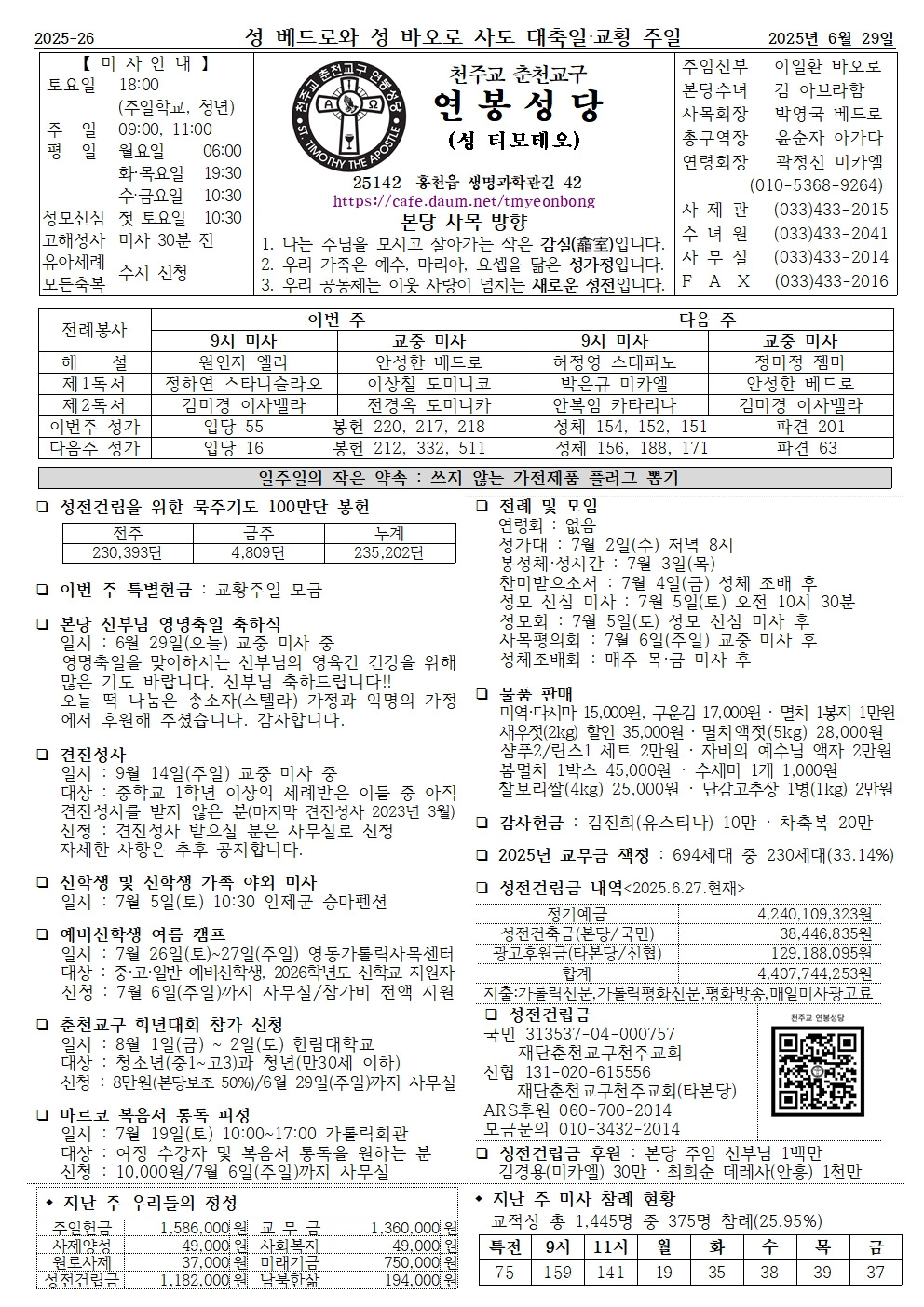 2025년 6월 29일 성 베드로와 성 바오로 사도 대축일·교황 주일 작성자스테파니아|작성시간25.06.27|조회수133 목록 댓글 0 글자크기 작게가 글자크기 크게가 다음검색 현재 게시글 추가 기능 열기 북마크 공유하기 신고 센터로 신고 댓글 댓글 0 댓글쓰기 답글쓰기 댓글 리스트