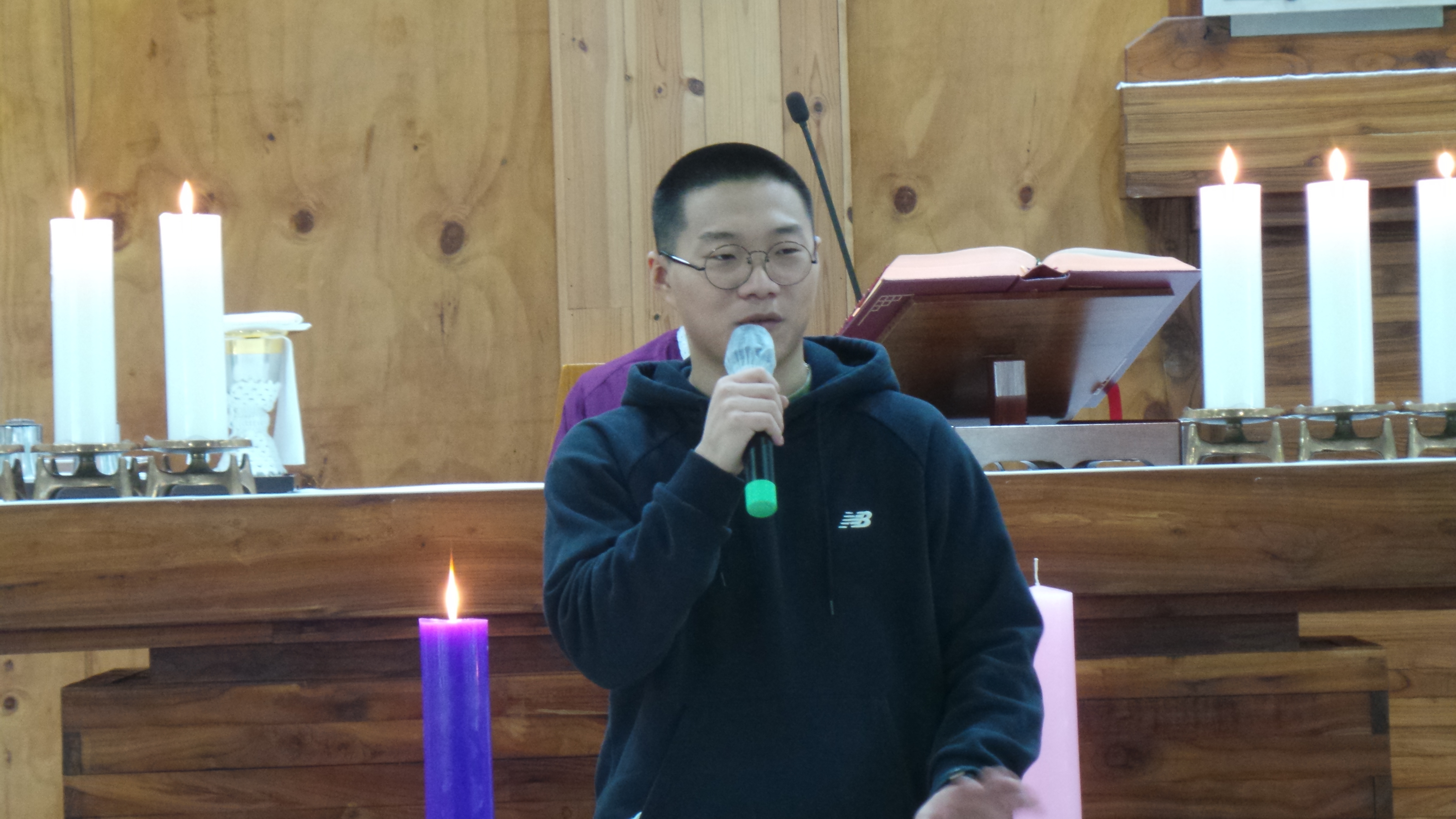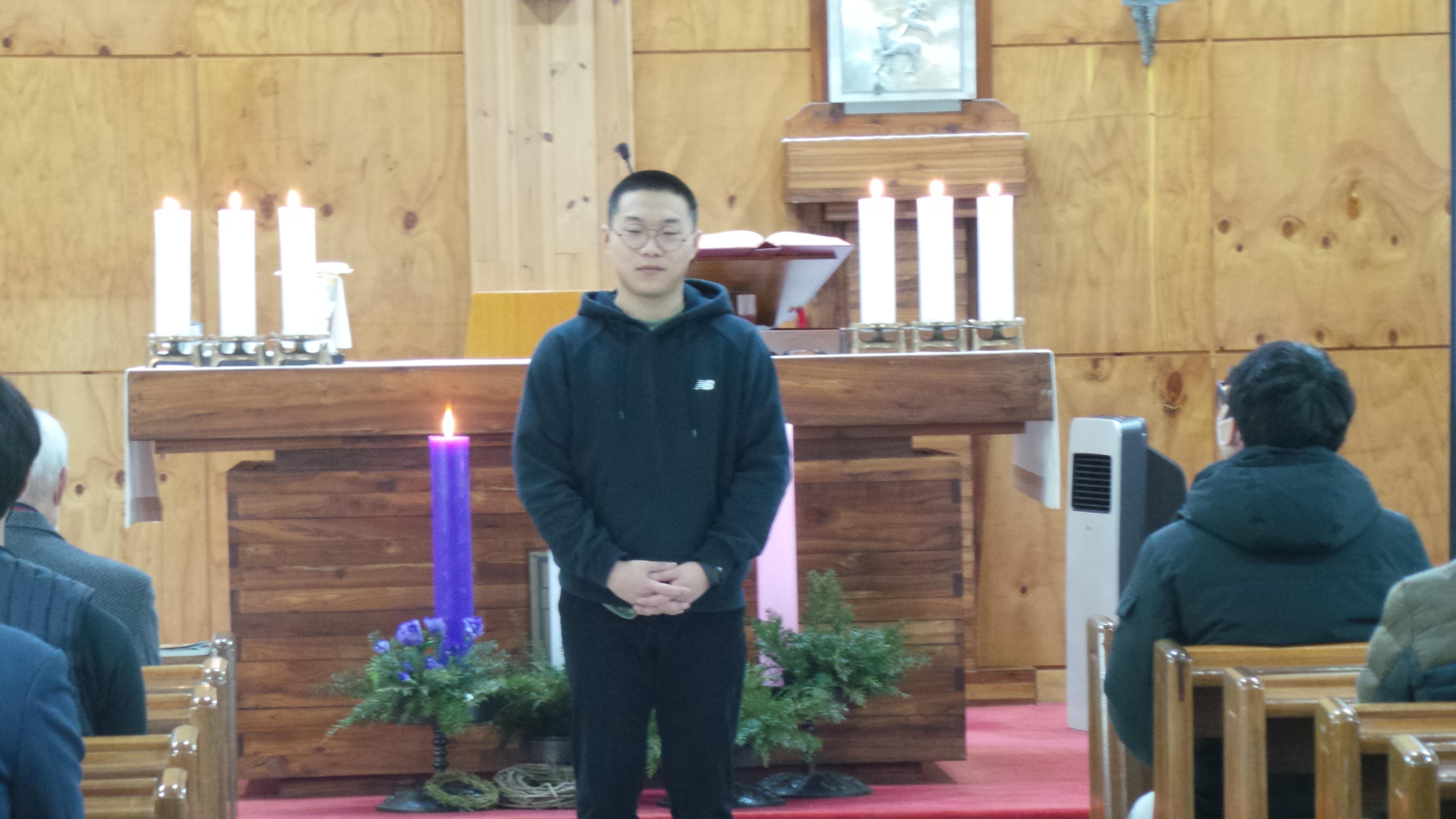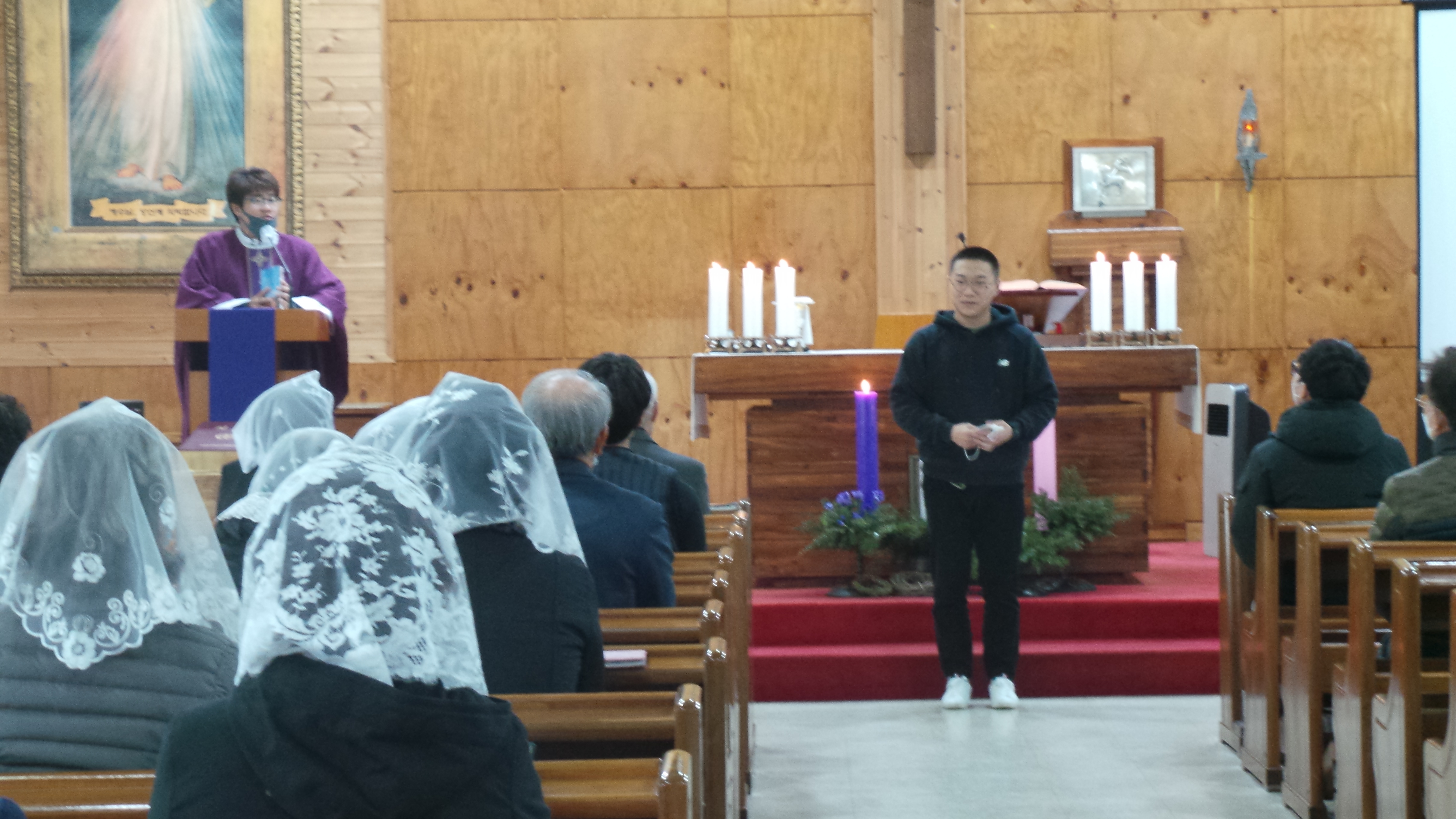 2020년 12월 5일(토)~6일(주일) 미사 중에 정디도(디도) 신학생이 8일 군입대를 앞두고 신자 분들에게 잘 다녀오겠다는 입대 인사를 하였습니다.