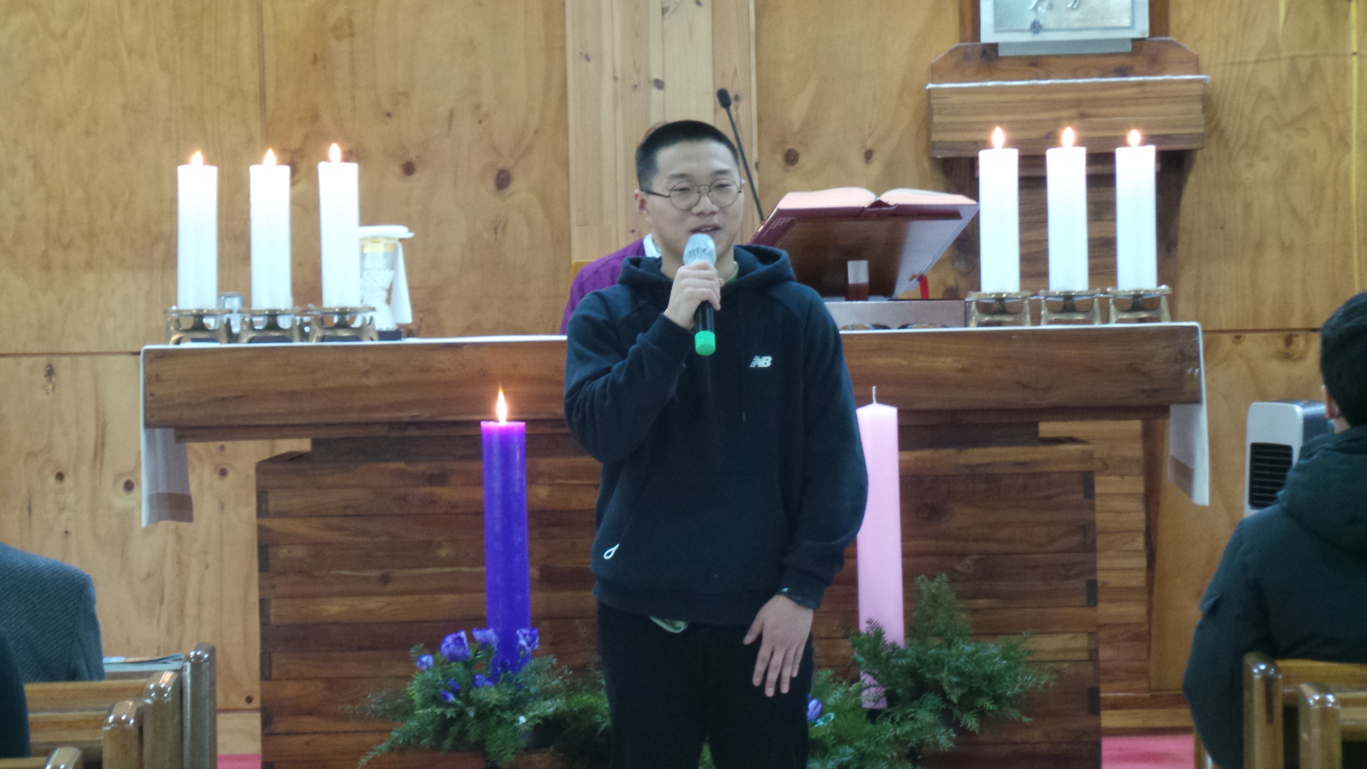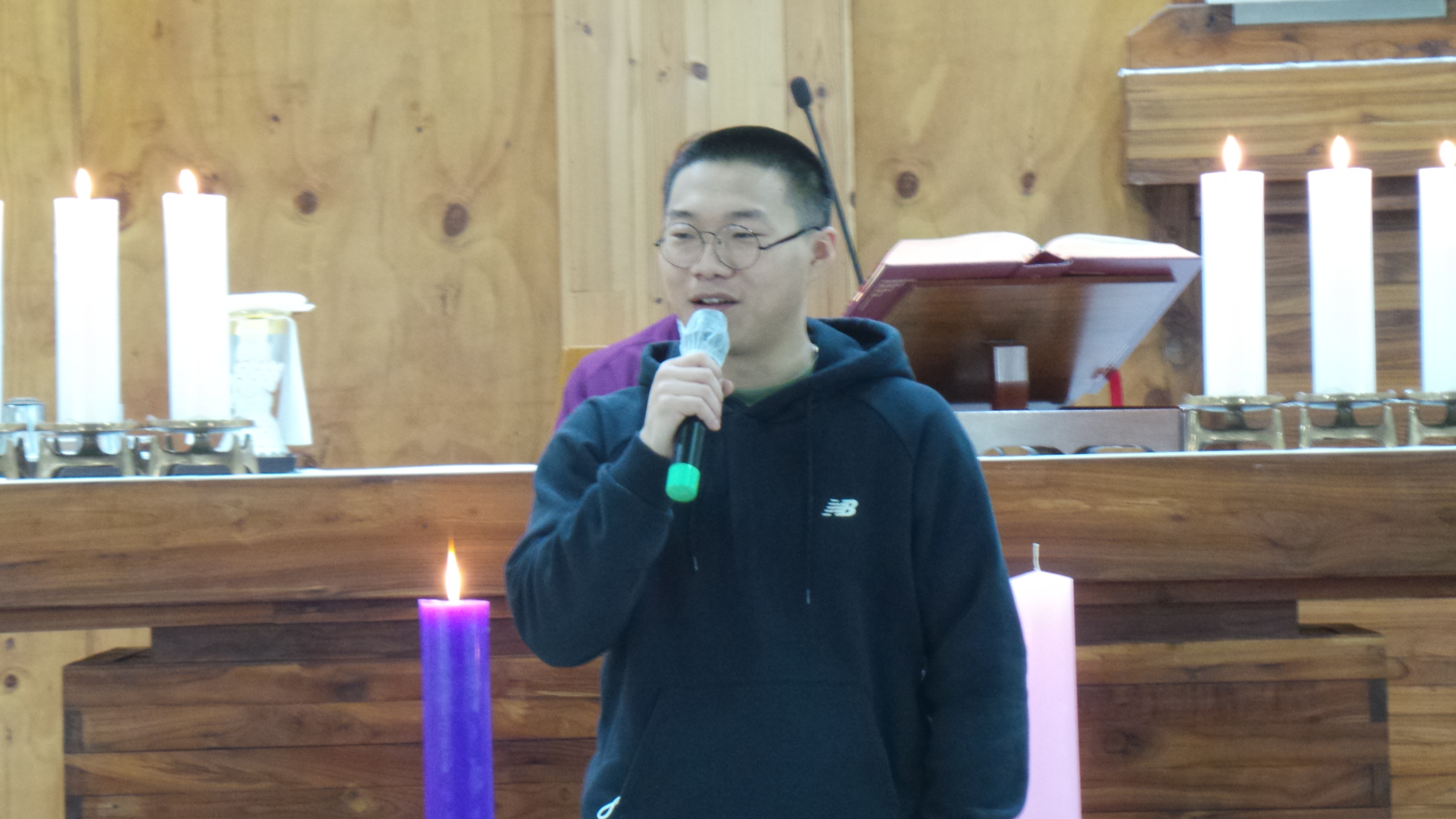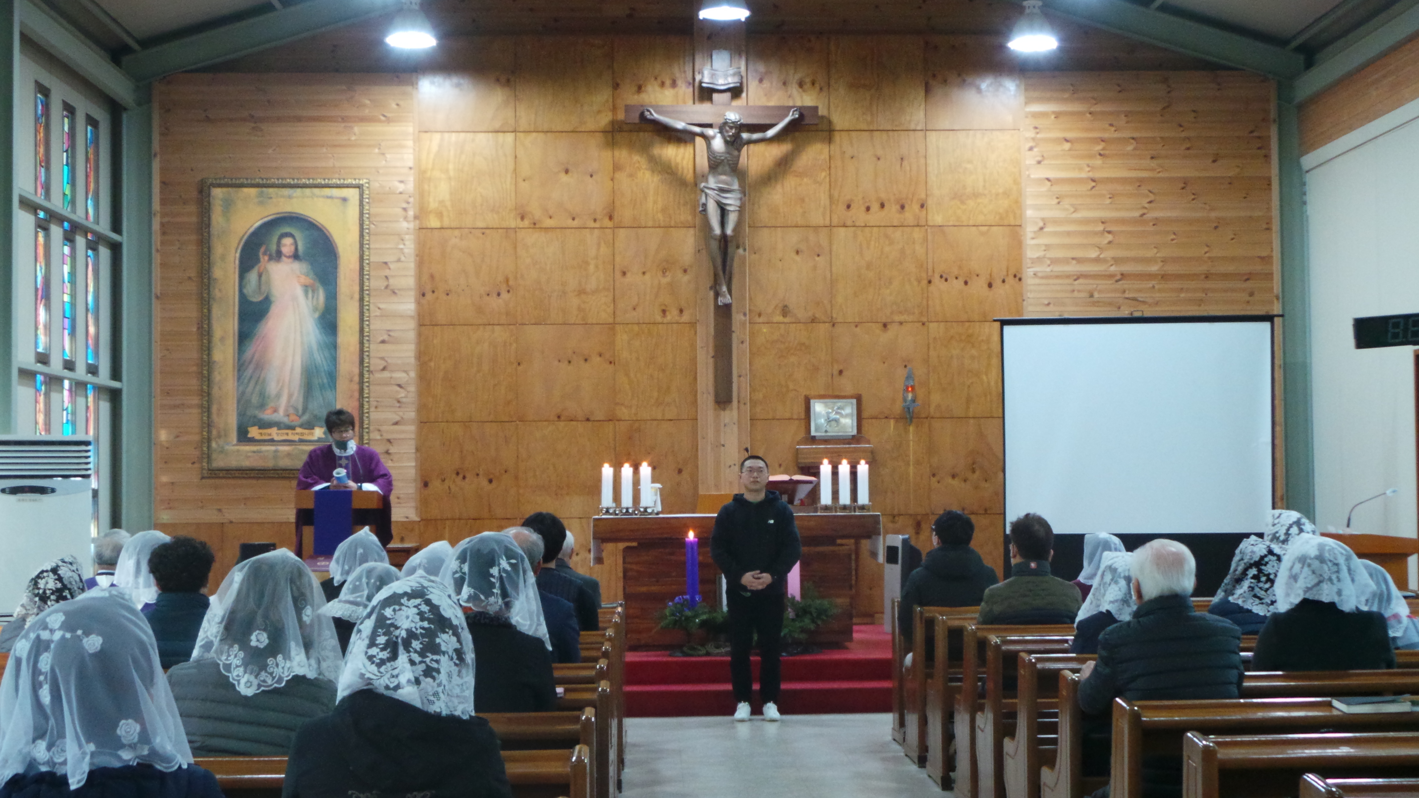 2020년 12월 5일(토)~6일(주일) 미사 중에 정디도(디도) 신학생이 8일 군입대를 앞두고 신자 분들에게 잘 다녀오겠다는 입대 인사를 하였습니다.