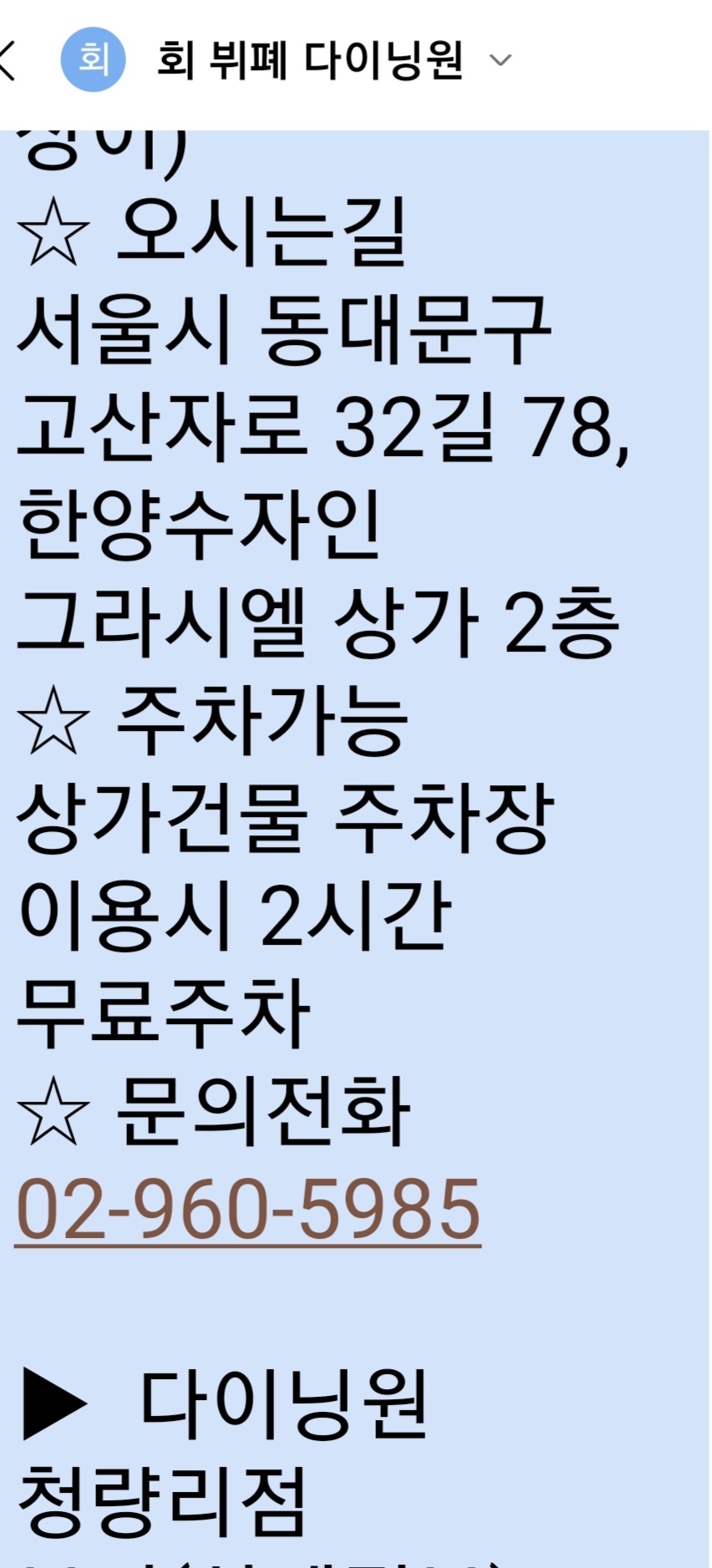 연회장 가는길은 청량리역1호선
