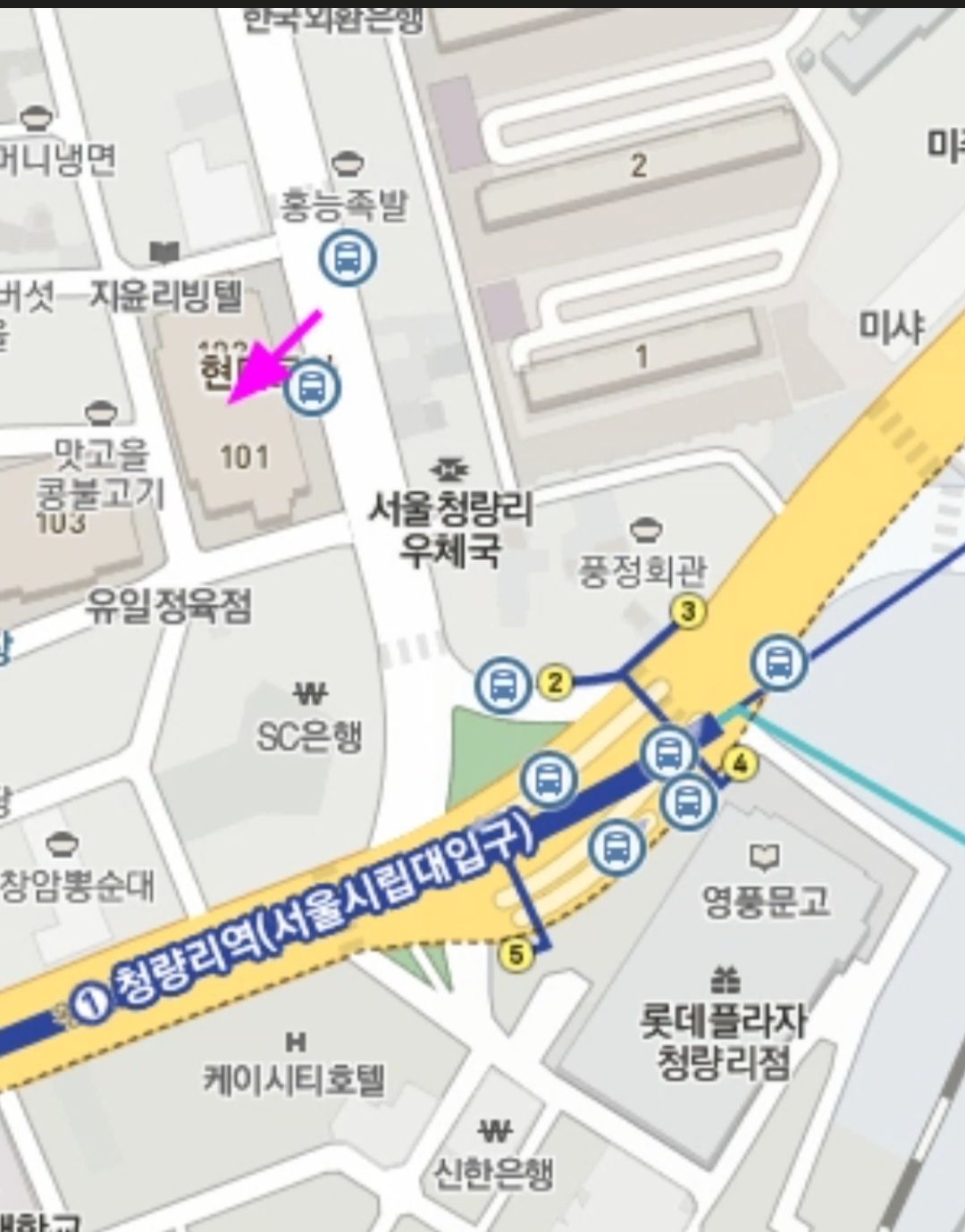 운동장 오시는길 청량리1호선2번출구나와 횡단보도