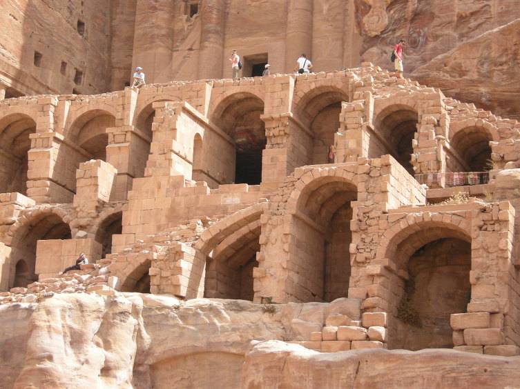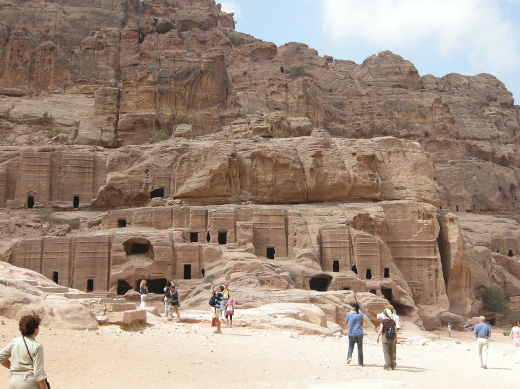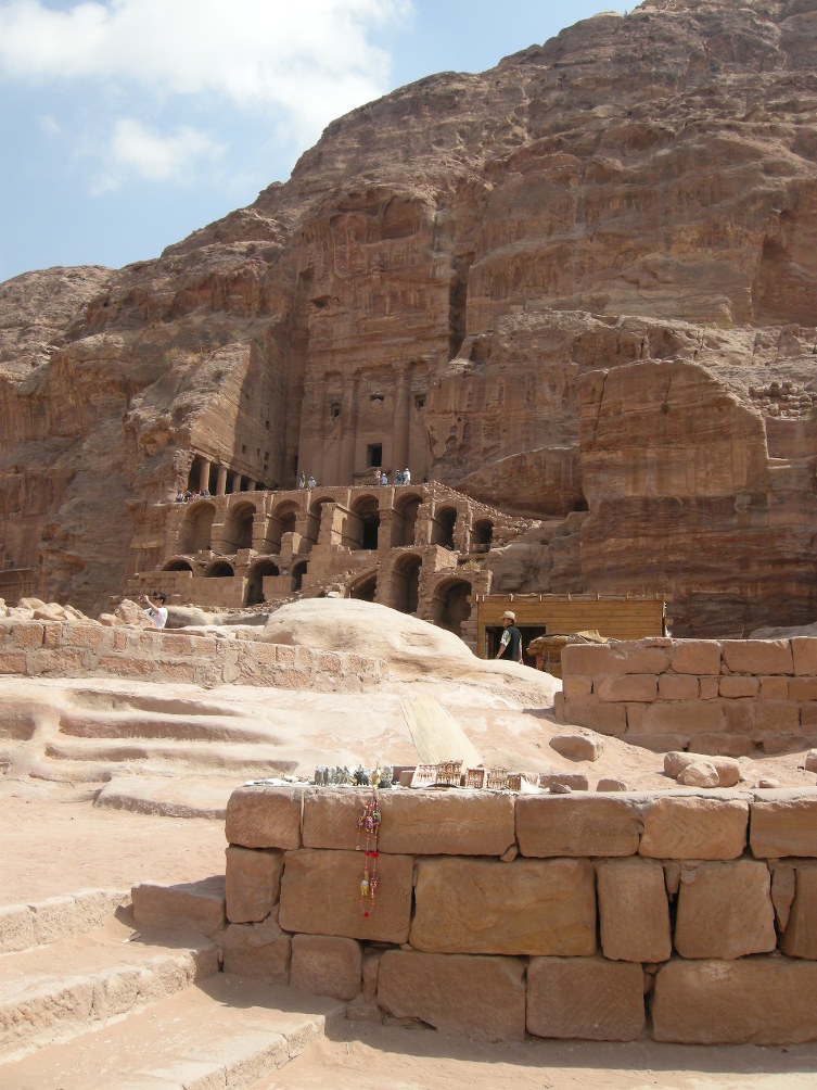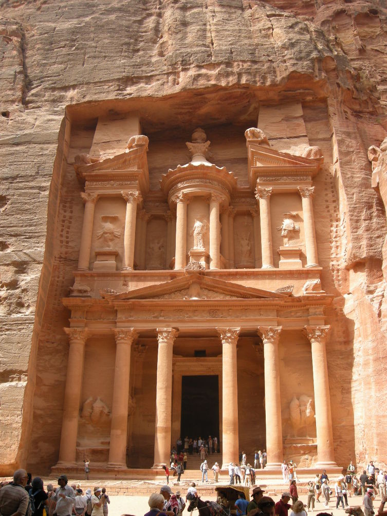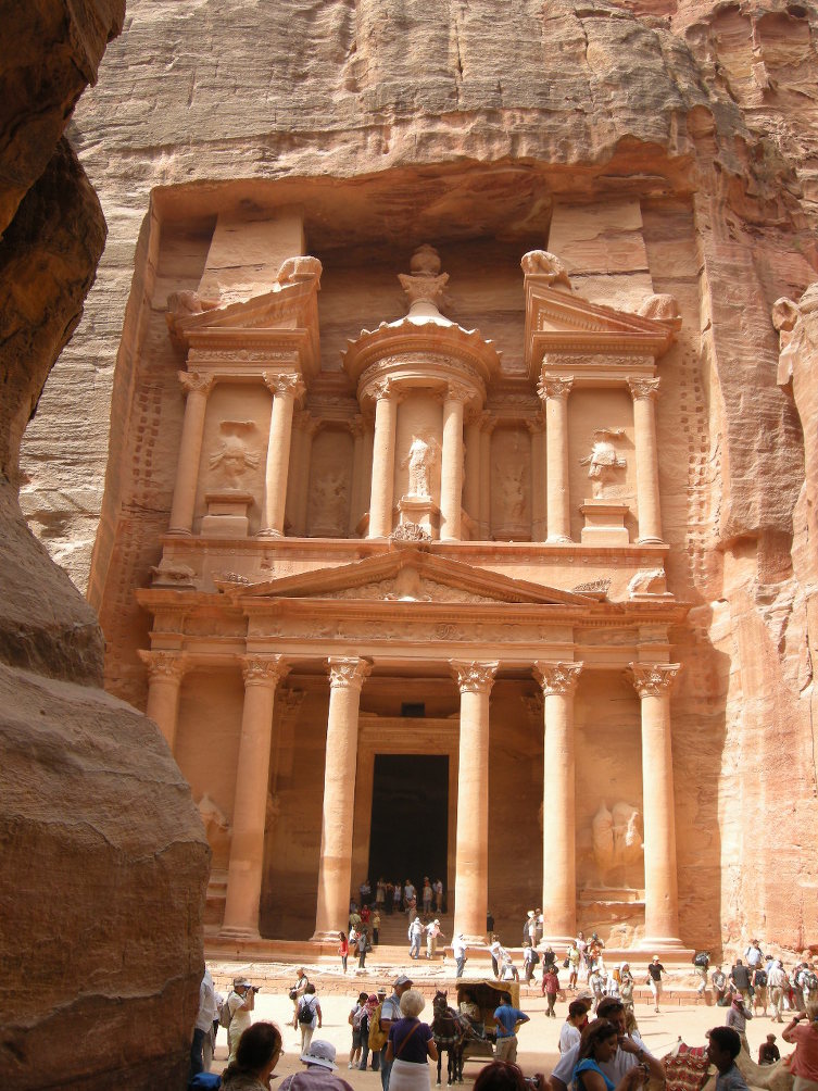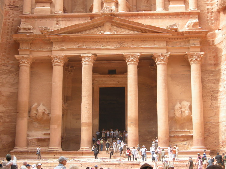요르단의 수도 암만의 서남쪽 150 Km 지점에 페트라의 유적이 있다. 아랍계 유목민 나바테이아인이 건설한 해발 950m의 산악도시로서 최고 높이 300m의 바위산으로 둘러싸여 있다. 교역로의 교차지점에 있어서 사막의 대상로를 지배하며 번영을 누렸다. 시가지 입구는 동쪽의 시크, 남쪽의 투그라, 북쪽의 투르크 마니에라라는 3개의 협곡으로 이루어져 있으며 곳곳에 뛰어난 기술로 세워진 건축물과 수로 등의 유적이 남아 있다. 유적 가운데 가장 유명한 카즈네 피라움은 장례사원으로 추정되는 건축물로서 바위산 벽면을 깎아 만들었다. 사원 정면에는 높이 약 30m, 너비 약 25m의 파사드가 있고 앞에는 넓은 광장이 펼쳐져 있다. 파사드는 2개의 박공벽, 프리즈, 기둥, 조각상 등으로 이루어져 있다. 카즈네 피라움 오른쪽에는 2세기 초 이곳을 지배한 로마인들의 극장 유적이 남아 있다. 바위산을 반쯤 깎아 움푹하게 만든 건축물로서 약 6000명의 인원을 수용하였던 규모이다. 극장 왼쪽에는 로마시대의 시가지가 있는데, 이곳에는 열주대로가 뻗어 있고 왕궁·신전·공공욕장 등의 유적이 있다. 암벽들 사이에는 부조들이 새겨져 있는데 그 모습이 사각형이면 나바테아인의 주신인 남신 ‘두샤라(돌 속에 숨은 신이란 뜻)’와 긴 모양의 여신 "알 우짜"를 의미하고, 오벨리스크 모양이면 죽은 이들을 추도하는 기념비를 가리킨다. 열주대로의 서쪽 왼쪽에 카스르 엘 빈트 신전이 자리잡고 있다. 이는 나바테아 만신전의 최고 신 두샤라를 상징하는 표석(神石)을 모시는 신전이다. 본전은 높이 23m로서 열주랑·전실(前室), 지성소로 이루어져 있고 신전 앞뜰에는 야외제단이 설치되어 있다. 도시의 서쪽 끝에는 장례사원인 앗데이르 유적이 있다. 이 신전에서 좀더 가면 바위 언덕 위에 작은 박물관이 있는데 그리스. 로마 신화를 소재로 한 인물 부조와 조각 등 소품들밖에 별 볼거리가 없다. 1985년 유네스코에서 세계문화유산으로 지정하였다.