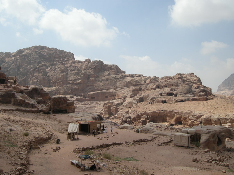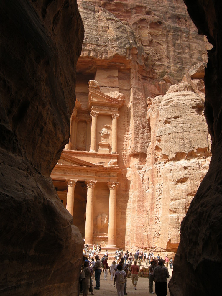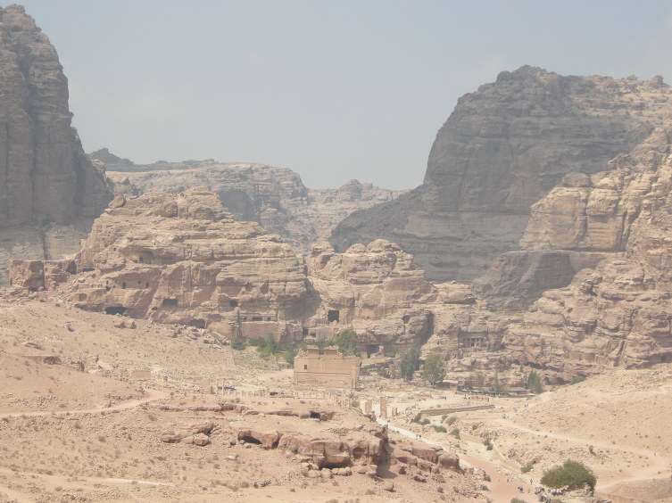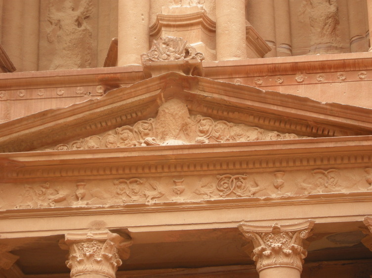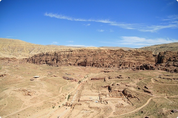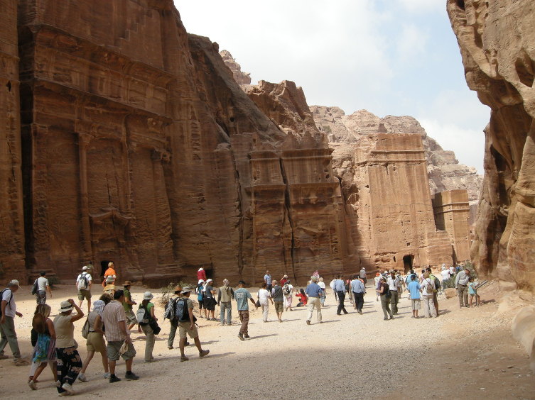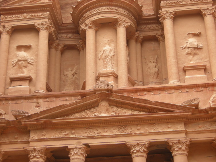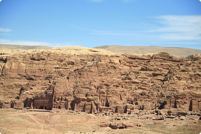 요르단의 수도 암만의 서남쪽 150 Km 지점에 페트라의 유적이 있다. 아랍계 유목민 나바테이아인이 건설한 해발 950m의 산악도시로서 최고 높이 300m의 바위산으로 둘러싸여 있다. 교역로의 교차지점에 있어서 사막의 대상로를 지배하며 번영을 누렸다. 시가지 입구는 동쪽의 시크, 남쪽의 투그라, 북쪽의 투르크 마니에라라는 3개의 협곡으로 이루어져 있으며 곳곳에 뛰어난 기술로 세워진 건축물과 수로 등의 유적이 남아 있다. 유적 가운데 가장 유명한 카즈네 피라움은 장례사원으로 추정되는 건축물로서 바위산 벽면을 깎아 만들었다. 사원 정면에는 높이 약 30m, 너비 약 25m의 파사드가 있고 앞에는 넓은 광장이 펼쳐져 있다. 파사드는 2개의 박공벽, 프리즈, 기둥, 조각상 등으로 이루어져 있다. 카즈네 피라움 오른쪽에는 2세기 초 이곳을 지배한 로마인들의 극장 유적이 남아 있다. 바위산을 반쯤 깎아 움푹하게 만든 건축물로서 약 6000명의 인원을 수용하였던 규모이다. 극장 왼쪽에는 로마시대의 시가지가 있는데, 이곳에는 열주대로가 뻗어 있고 왕궁·신전·공공욕장 등의 유적이 있다. 암벽들 사이에는 부조들이 새겨져 있는데 그 모습이 사각형이면 나바테아인의 주신인 남신 ‘두샤라(돌 속에 숨은 신이란 뜻)’와 긴 모양의 여신 "알 우짜"를 의미하고, 오벨리스크 모양이면 죽은 이들을 추도하는 기념비를 가리킨다. 열주대로의 서쪽 왼쪽에 카스르 엘 빈트 신전이 자리잡고 있다. 이는 나바테아 만신전의 최고 신 두샤라를 상징하는 표석(神石)을 모시는 신전이다. 본전은 높이 23m로서 열주랑·전실(前室), 지성소로 이루어져 있고 신전 앞뜰에는 야외제단이 설치되어 있다. 도시의 서쪽 끝에는 장례사원인 앗데이르 유적이 있다. 이 신전에서 좀더 가면 바위 언덕 위에 작은 박물관이 있는데 그리스. 로마 신화를 소재로 한 인물 부조와 조각 등 소품들밖에 별 볼거리가 없다. 1985년 유네스코에서 세계문화유산으로 지정하였다.