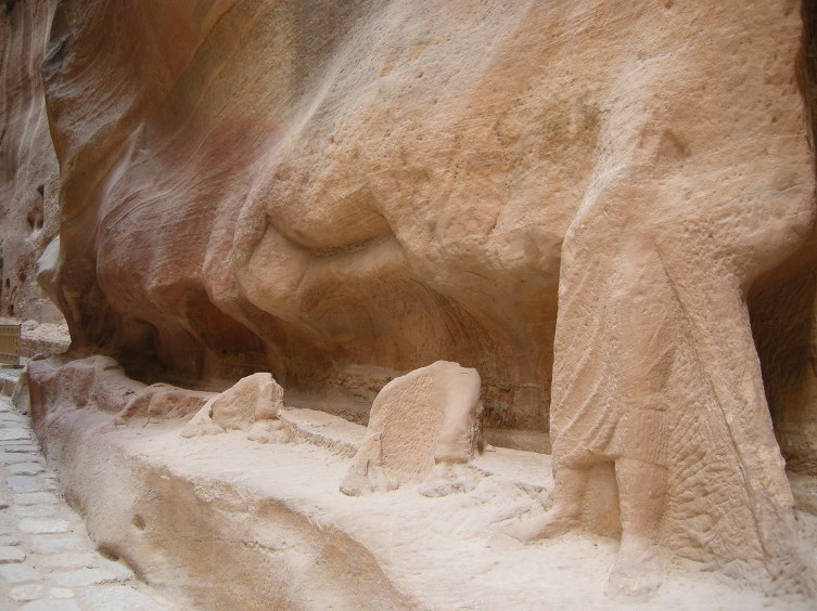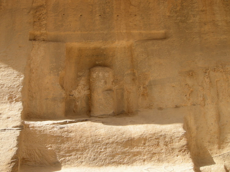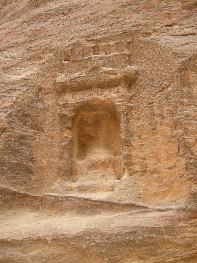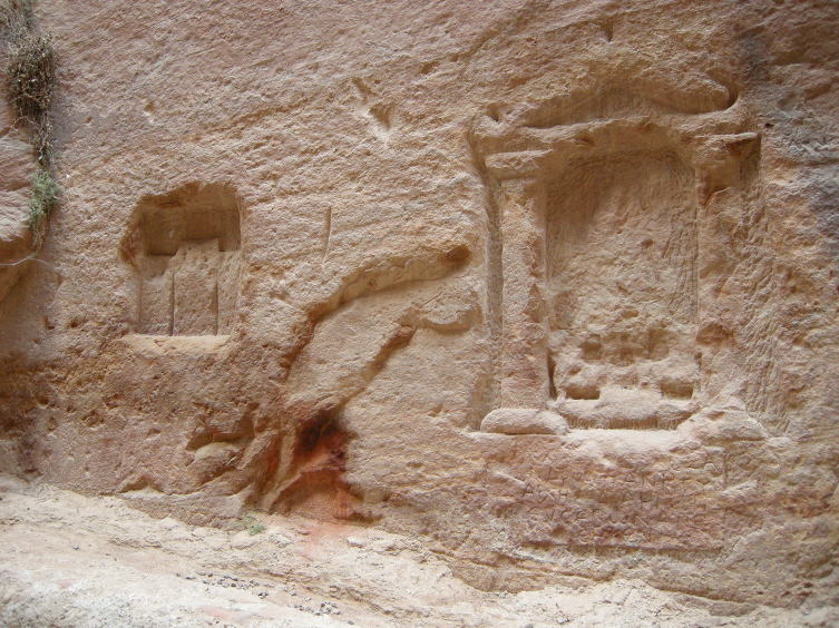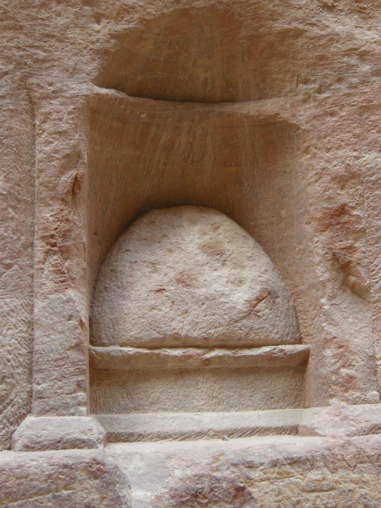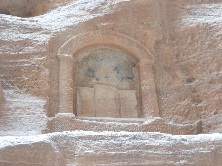 혐곡으로 가는 길 암벽위에 부조로 새겨져 있다. 그 모습이 사각형이면 나바테아인의 주신인 남신 ‘두샤라(돌 속에 숨은 신이란 뜻)이고 둥근 형태는 여신 알우짜이다. 나바테아인들이 페트라 암벽 협곡에 도시를 세우고 바위속에서 생활하며 장사지내는 모든 것은 바로 그들이 섬기던 바위신이 있기 때문이었다.