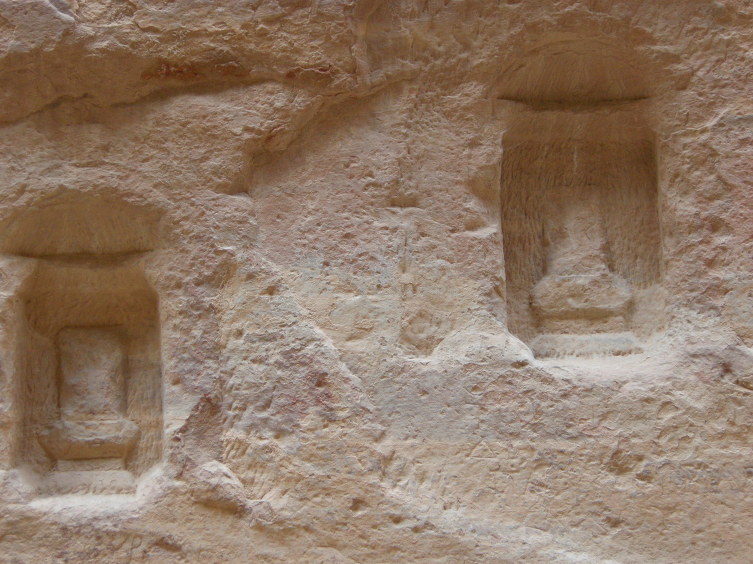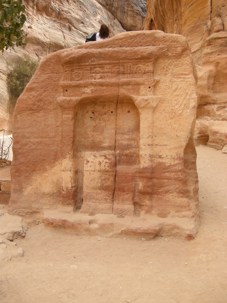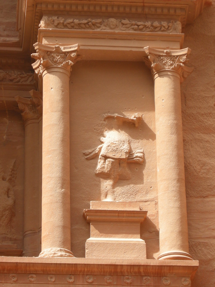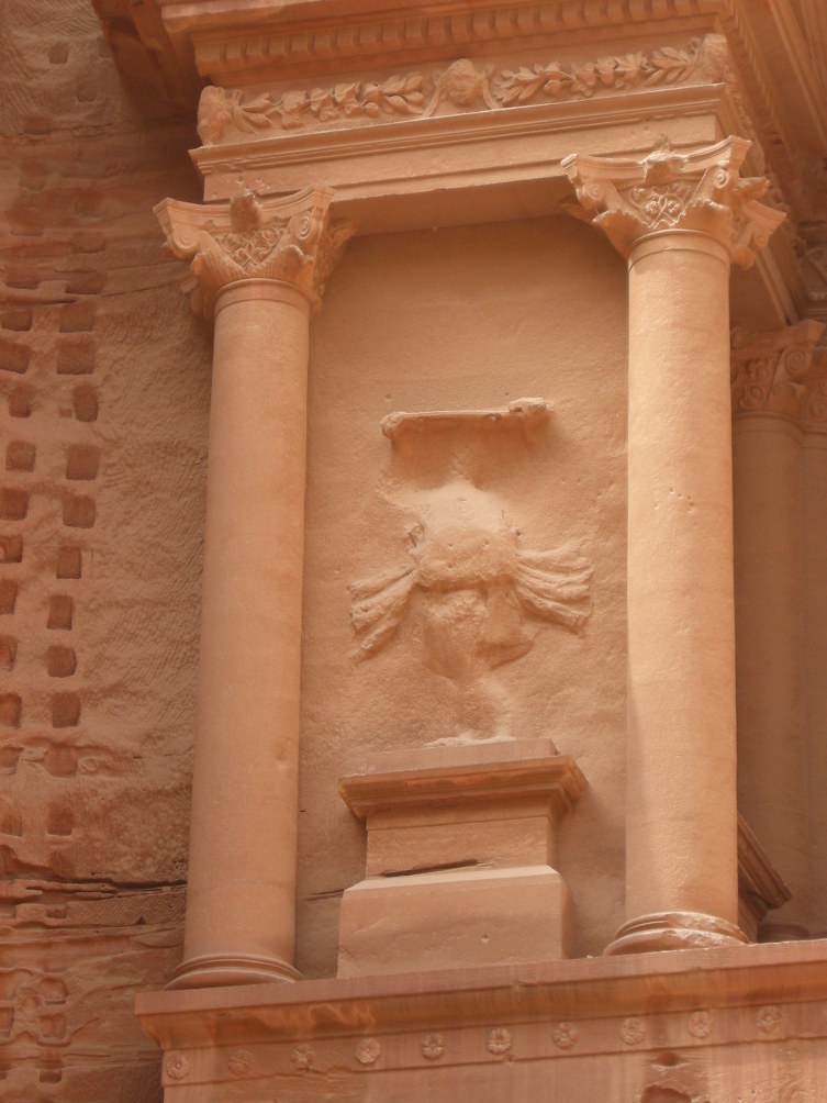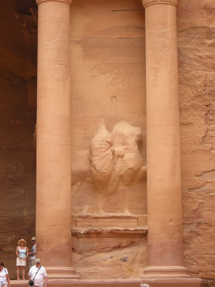 혐곡으로 가는 길 암벽위에 부조로 새겨져 있다. 그 모습이 사각형이면 나바테아인의 주신인 남신 ‘두샤라(돌 속에 숨은 신이란 뜻)이고 둥근 형태는 여신 알우짜이다. 나바테아인들이 페트라 암벽 협곡에 도시를 세우고 바위속에서 생활하며 장사지내는 모든 것은 바로 그들이 섬기던 바위신이 있기 때문이었다.