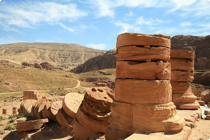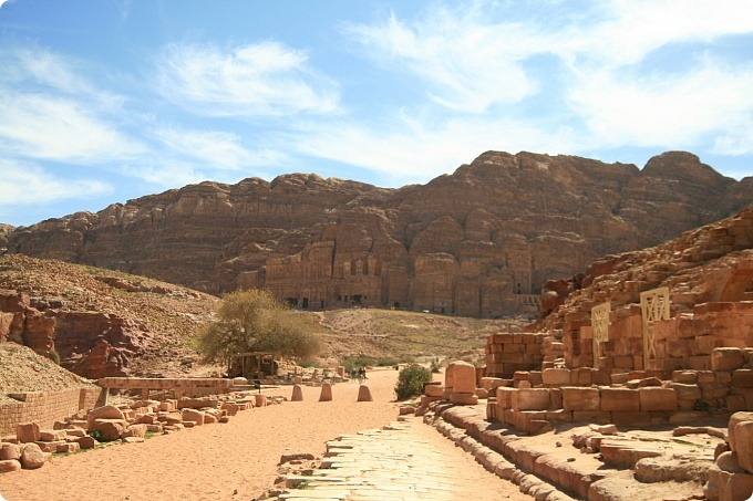 A.D 106년 나바테아인들이 만든 도시입구의 길로 석주 기둥 길을 따라 상점과 시장이 형성되었다