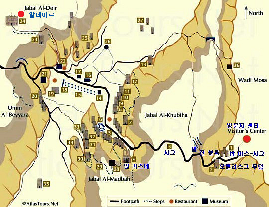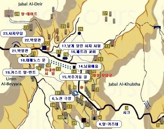 위 지도의 출처는 ⓒhttp://www.atlastours.net/jordan/petra_map.html.