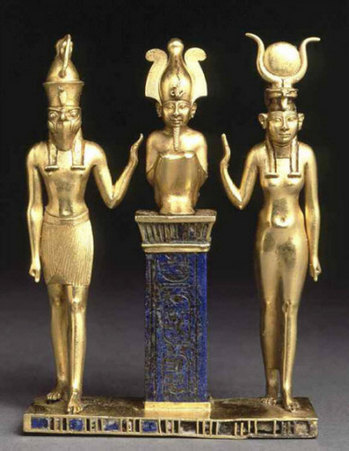 이시스(Isis, 좌), 호루스(중앙) 오시리스(우)