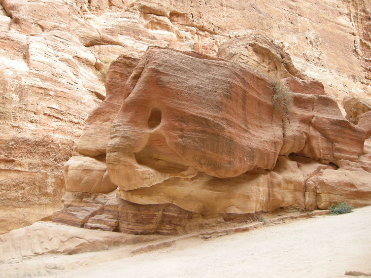 높은 암석들 사이로, 미로와 같은 균열 부분을 따라 2km 정도를 걸어 들어가면 이 암벽 사이의 좁은 통로를 아랍어로 협곡이라는 의미를 가진 '시크(Siq)' 라고 부른다.