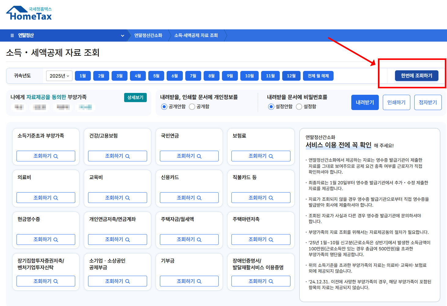 홈택스에서 연말정산 간소화 서비스 조회 방법