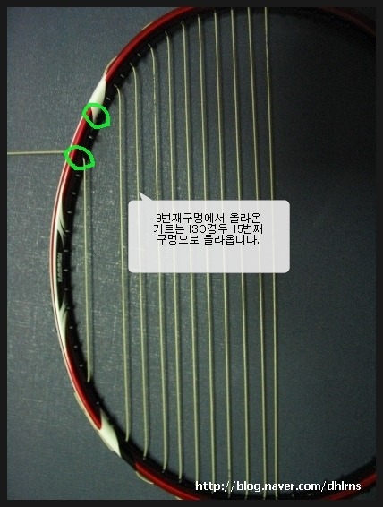 ISO적용 라켓의 경우 가장 바깥쪽에 있는 넙적한 구멍이 15번째 구멍입니다.