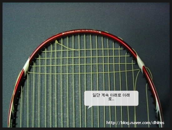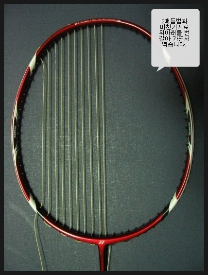 만약 헷갈리시는 분은 라켓을 뒤집어서 하면 같은 방법으로 엮을수 있습니다.