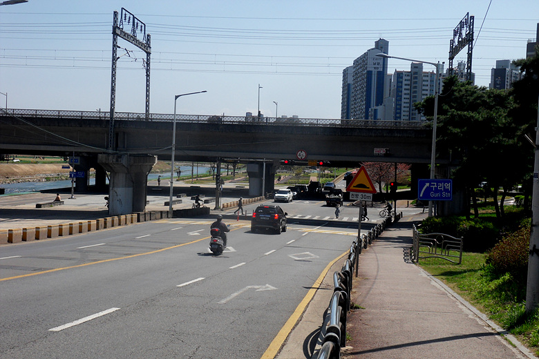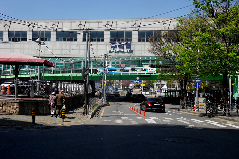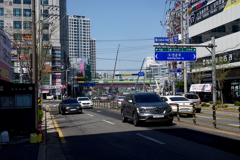 골목을 벗어나며 돌다리 사거리에서 구리역으로 다가서서 입구를 통과한후 구리광장