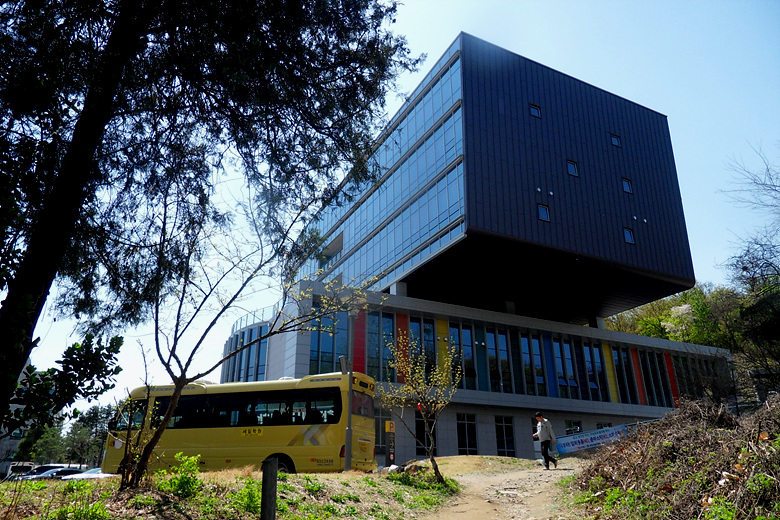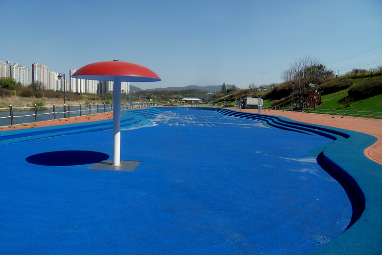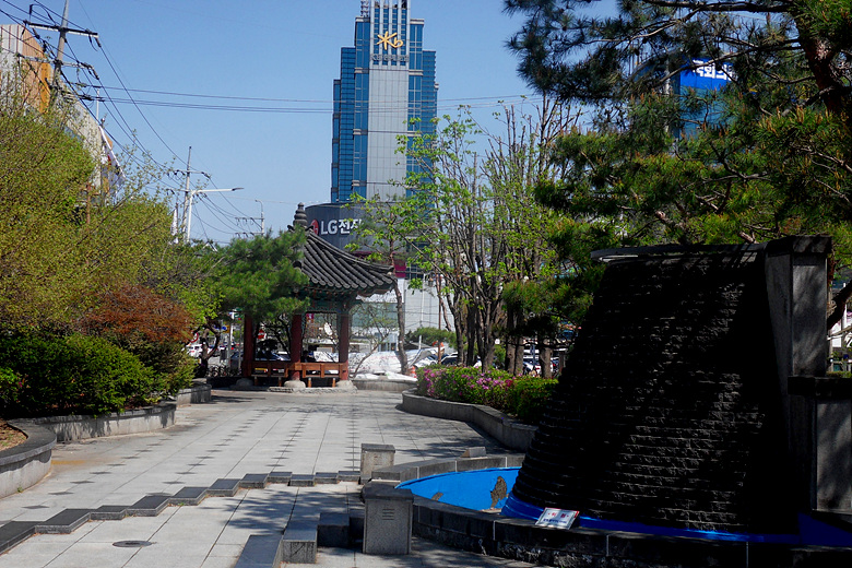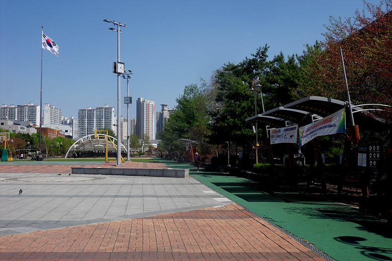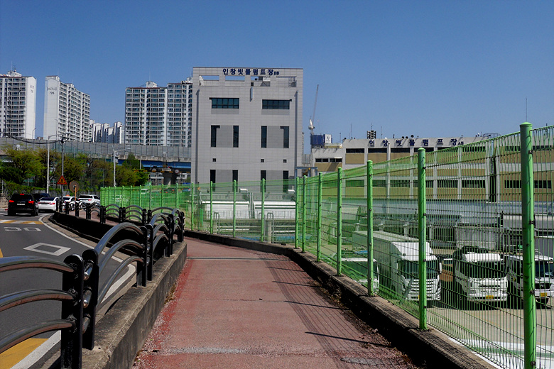표지석뒤 광장을지나 야외무대를 돌아 도서관과 인창고교앞 빗물펌프장을