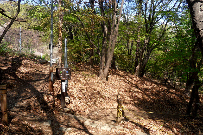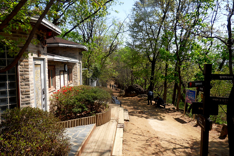 빠져들며 "노고산천골취장비" 를 확인하고 숲길을 따라 오르다 형제약수 갈림길에서