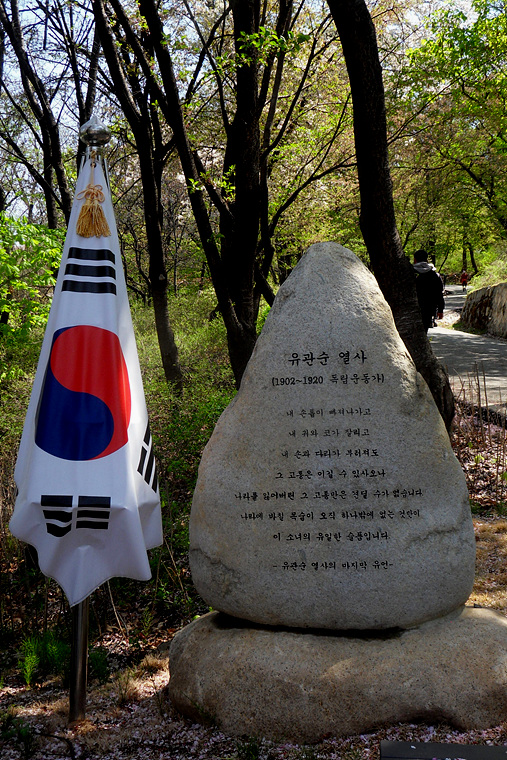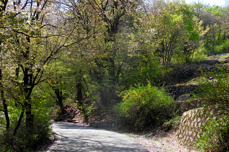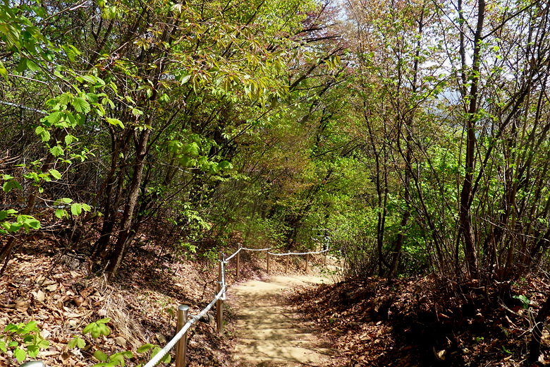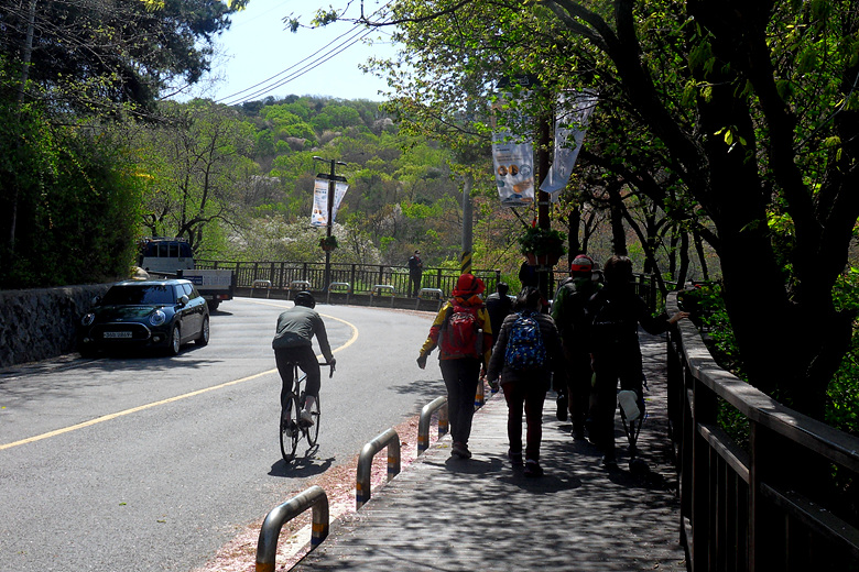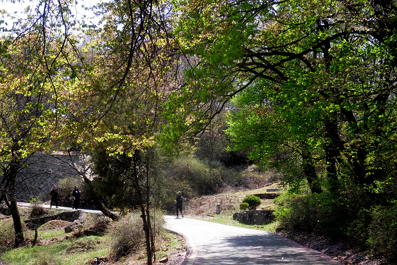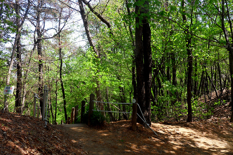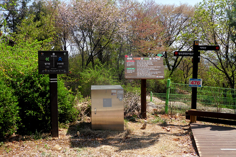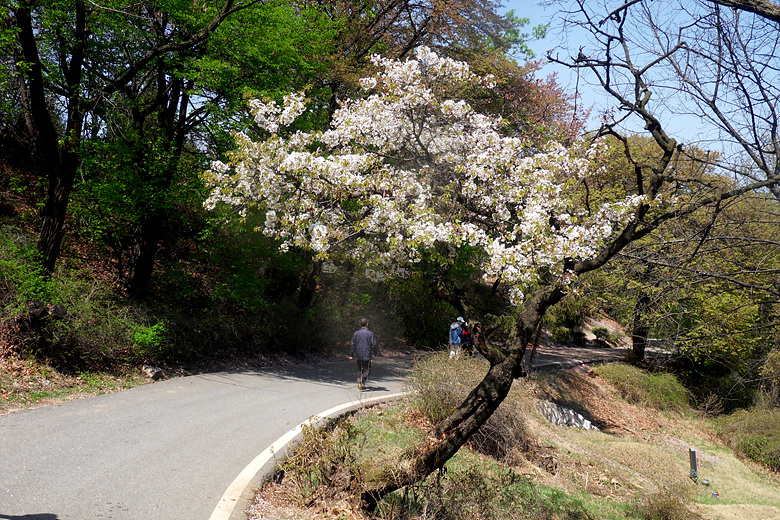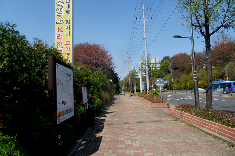 "봄마실 축제"가 열리고있는 갈림길에서 애국지사길 좌측 숲길 도로를 따라 오르는데