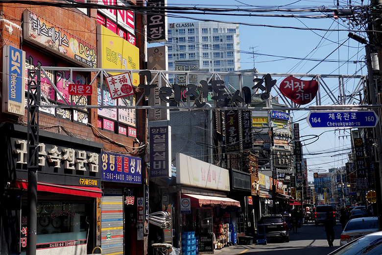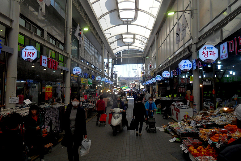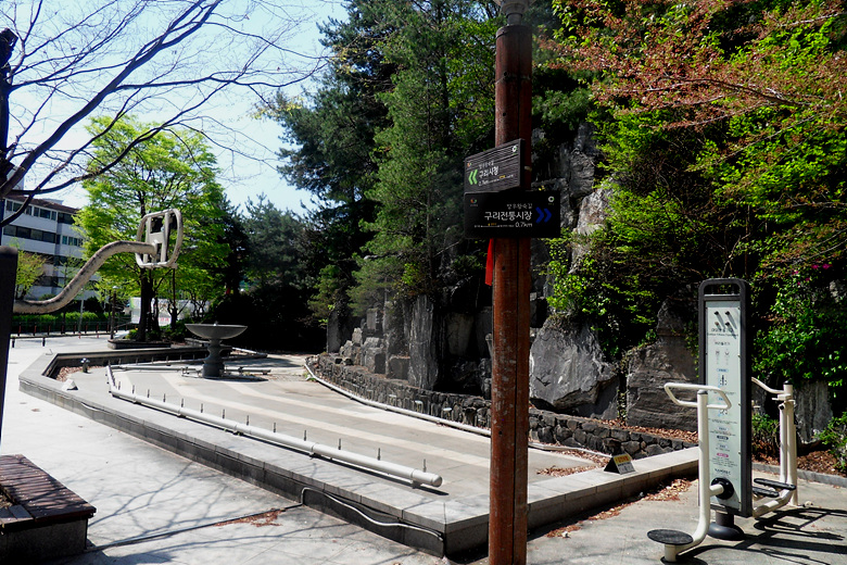 인공폭포를 돌아 구리시체육관을 지나 구리전통시장 입구로 들어선후 곱창