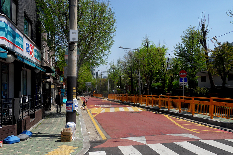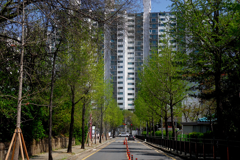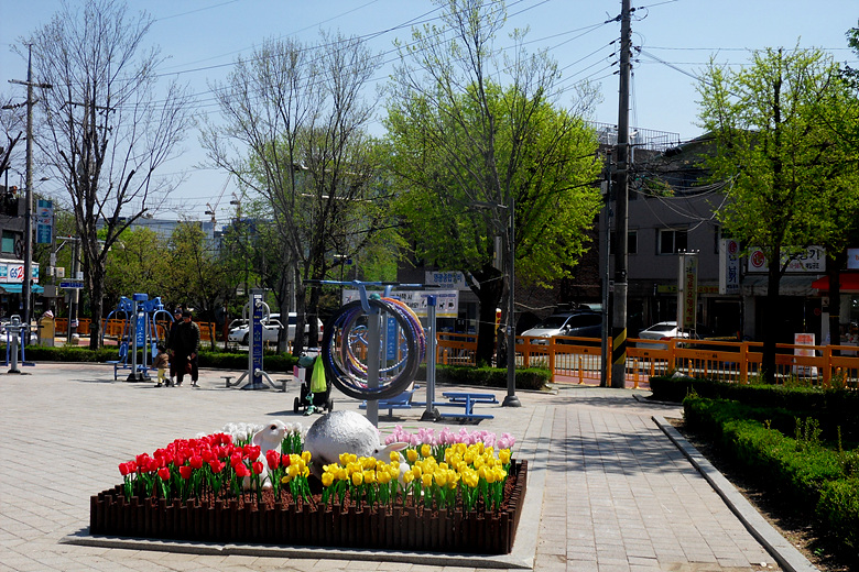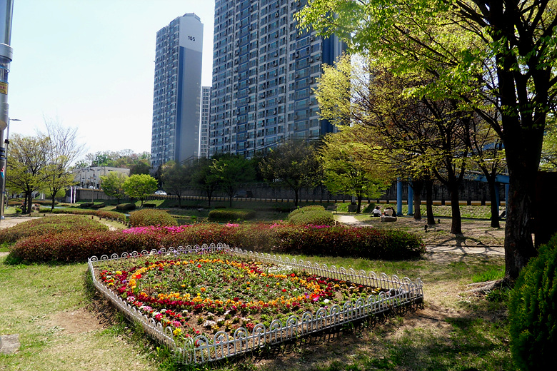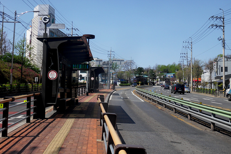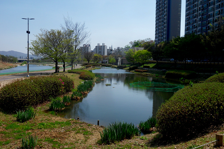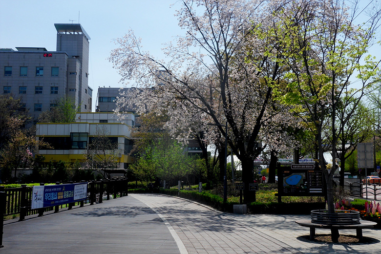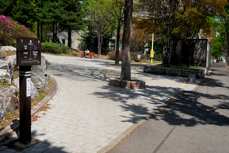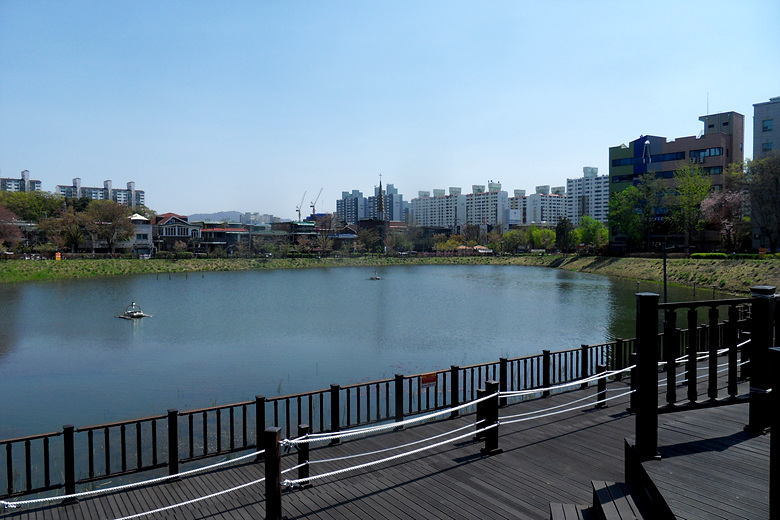 건너 이문안 호수공원으로 들어서서 우측 길을 돌아나와 펜스가 쳐있는 도로를 따라