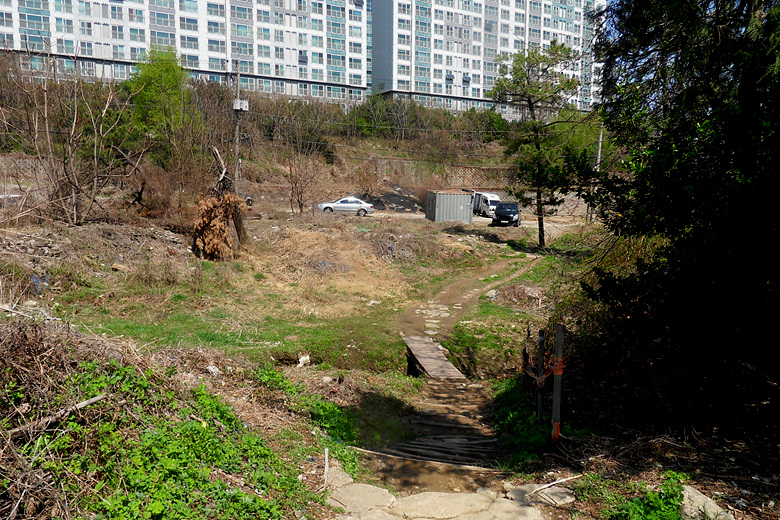 구리환경사업소를 마주하며 도착점인 합수머리의 세월교를 건너서 제2길 출발점인