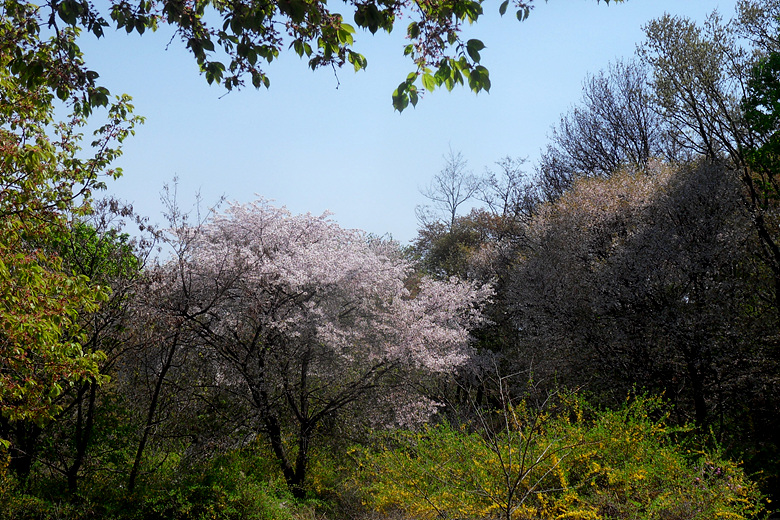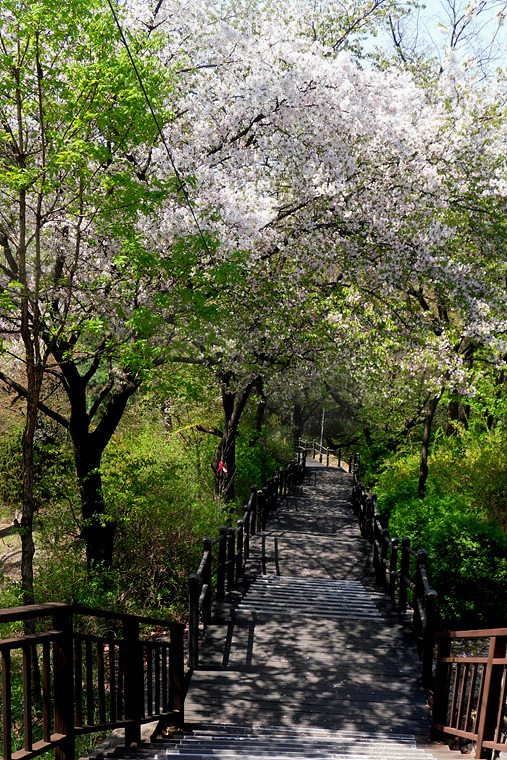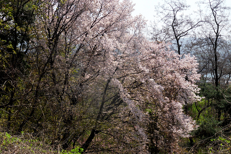푸르게 싹이 돋아나는 숲속 곳곳에 산벚꽃이 아름답게 피어나는 풍경속으로