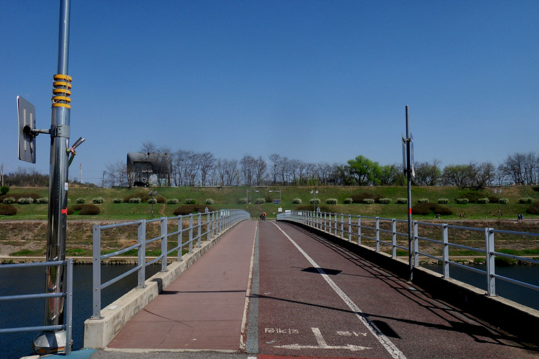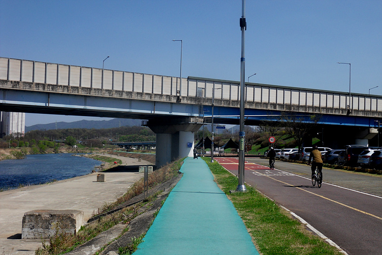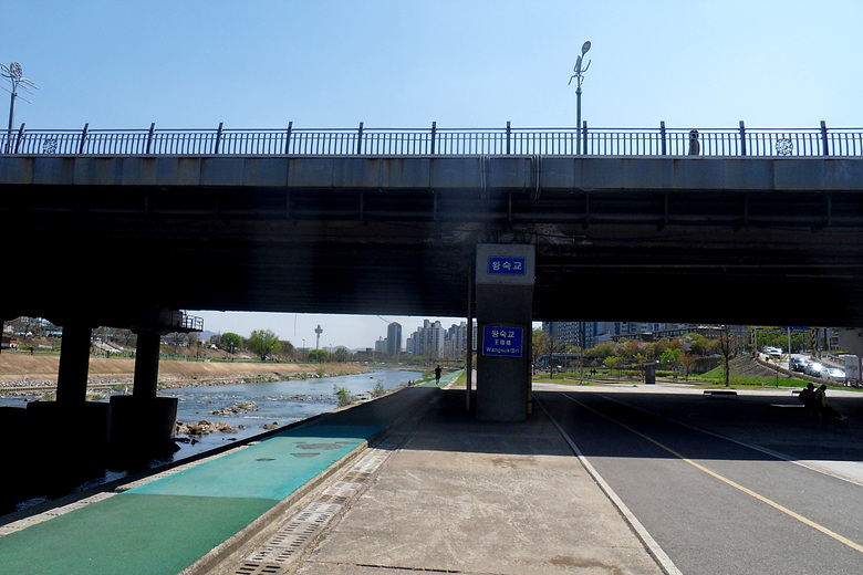 왕숙천1교와 활모양조형물이 세워진 토평교밑을 차례로통과후 구리타워와