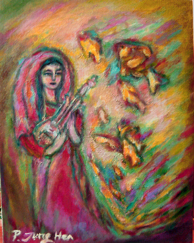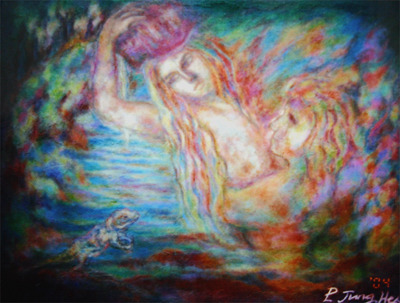 신을 향해 하늘 높이 뻗어 올라가는 물푸레나무 숲의 샘에 달이 뜨고 정령들은 물을 긷고 있습니다 나르시시즘에서 시작되는 인간의 자기애, 물에 비친 얼굴만 보지 않았던들 불행을 비껴 갔을테지요 내 그림의 주제를 이루는 신화는 그래서 인간의 이야기며 또한 삶입니다 어쩌면 편협된 예술인들의 상반되는 장르앞에 동등한 문예사조를 꿈꾸는 저항같은 것일까요 知와 감성을 그림과 시로 화면에 떨어뜨려 봅니다