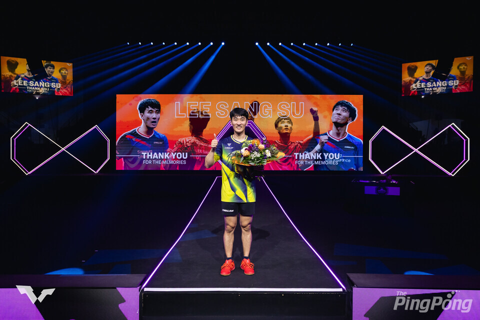 ▲ WTT가 이상수의 은퇴를 기념하는 시간을 마련했다. 퍼포먼스를 펼쳤다. 사진_WTT.